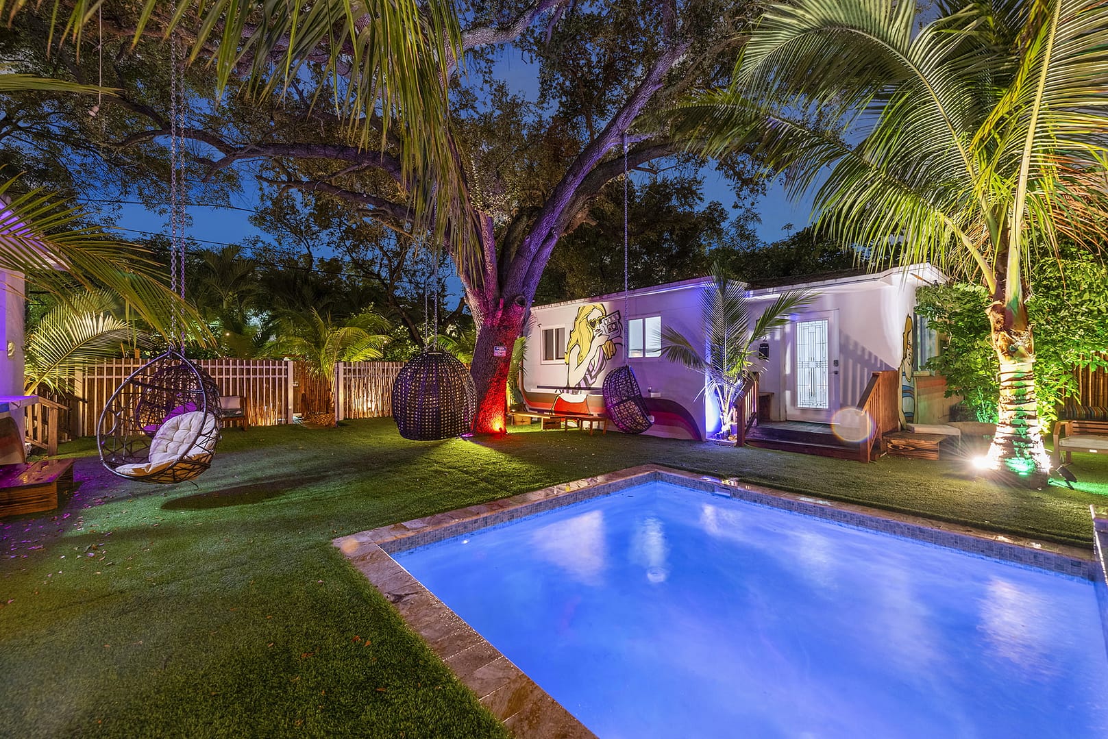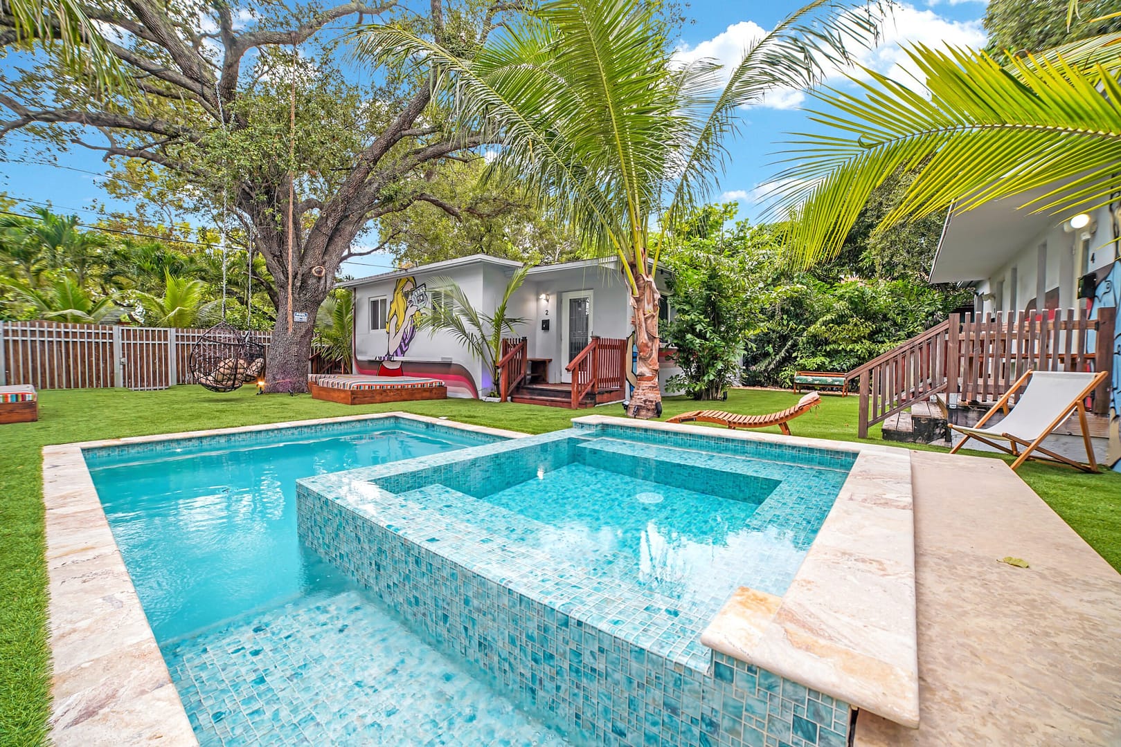 Villa Brad invites you to bask in the tropical tranquility that sets the stage for a relaxed Miami lifestyle. This isn't just a bungalow; it's an oasis where lush greenery and swaying palms create a serene backdrop, transporting you to a world of leisure and comfort.