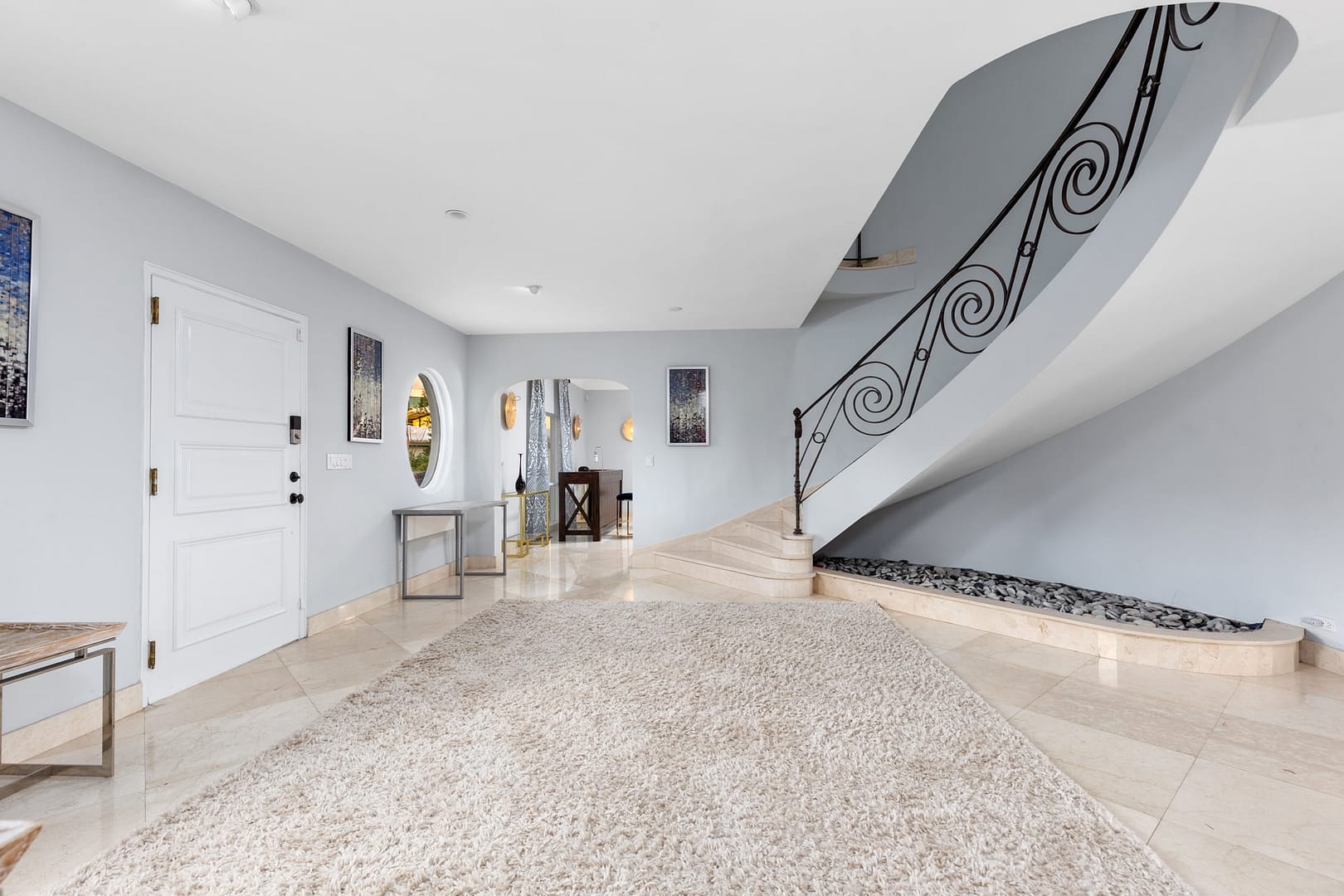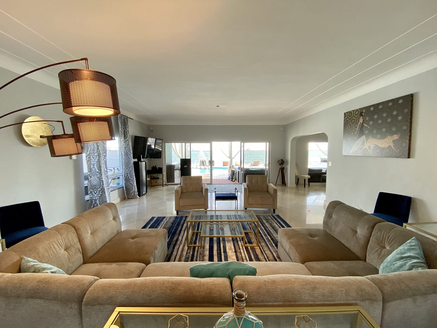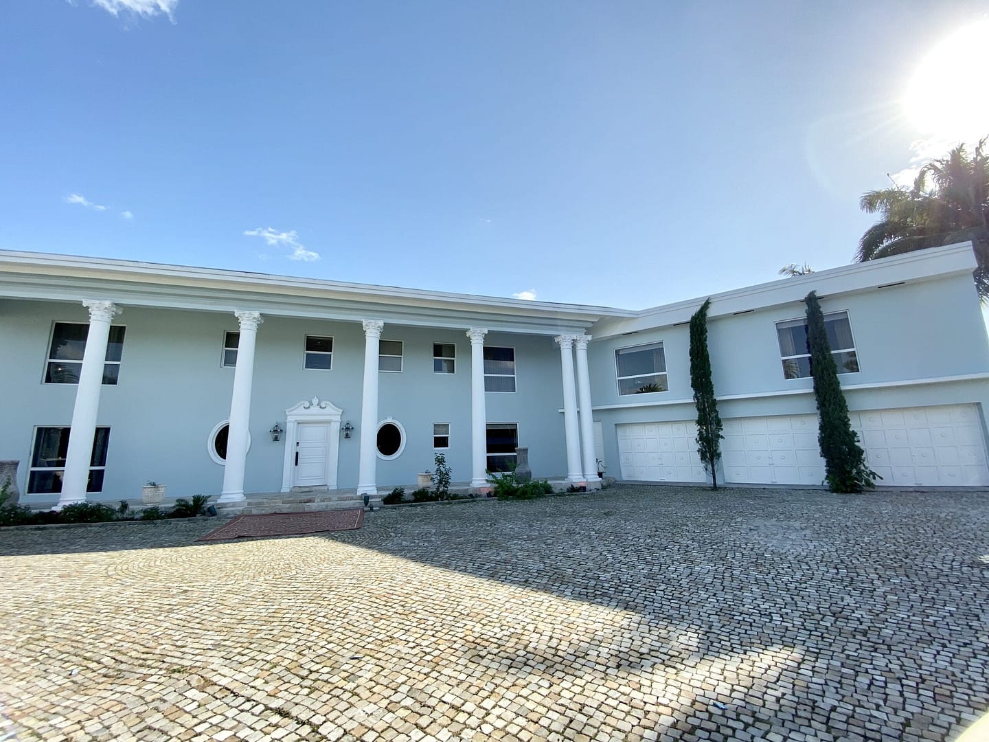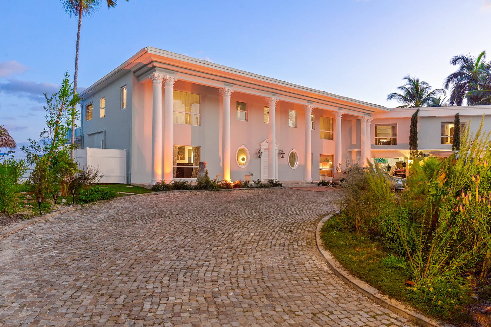 This waterfront palace in a gated community is located at the very end of the cul de sac and sits on the entire