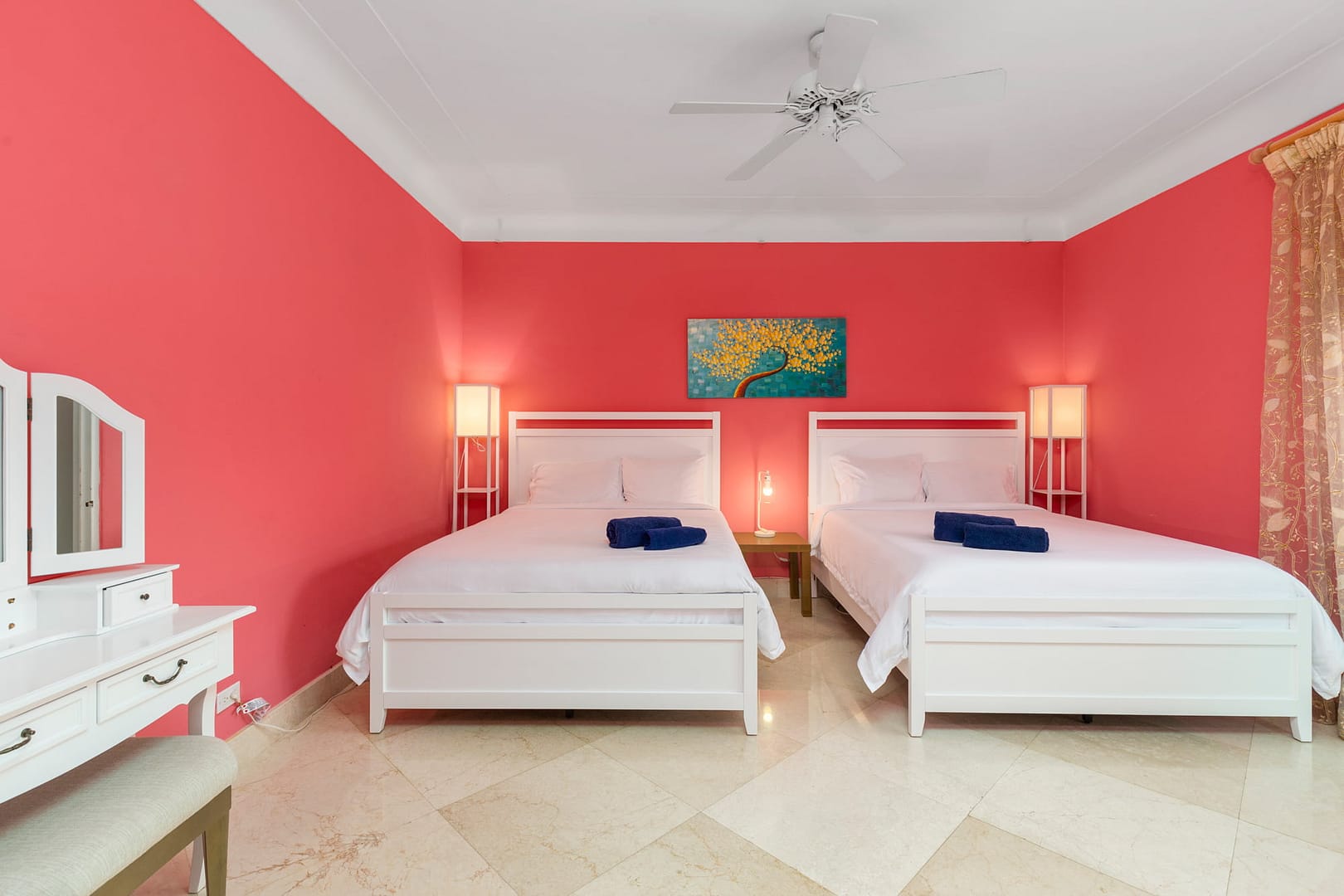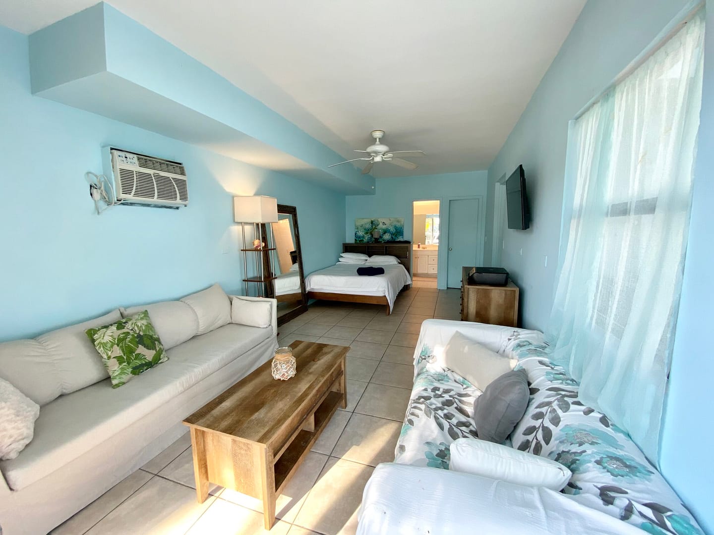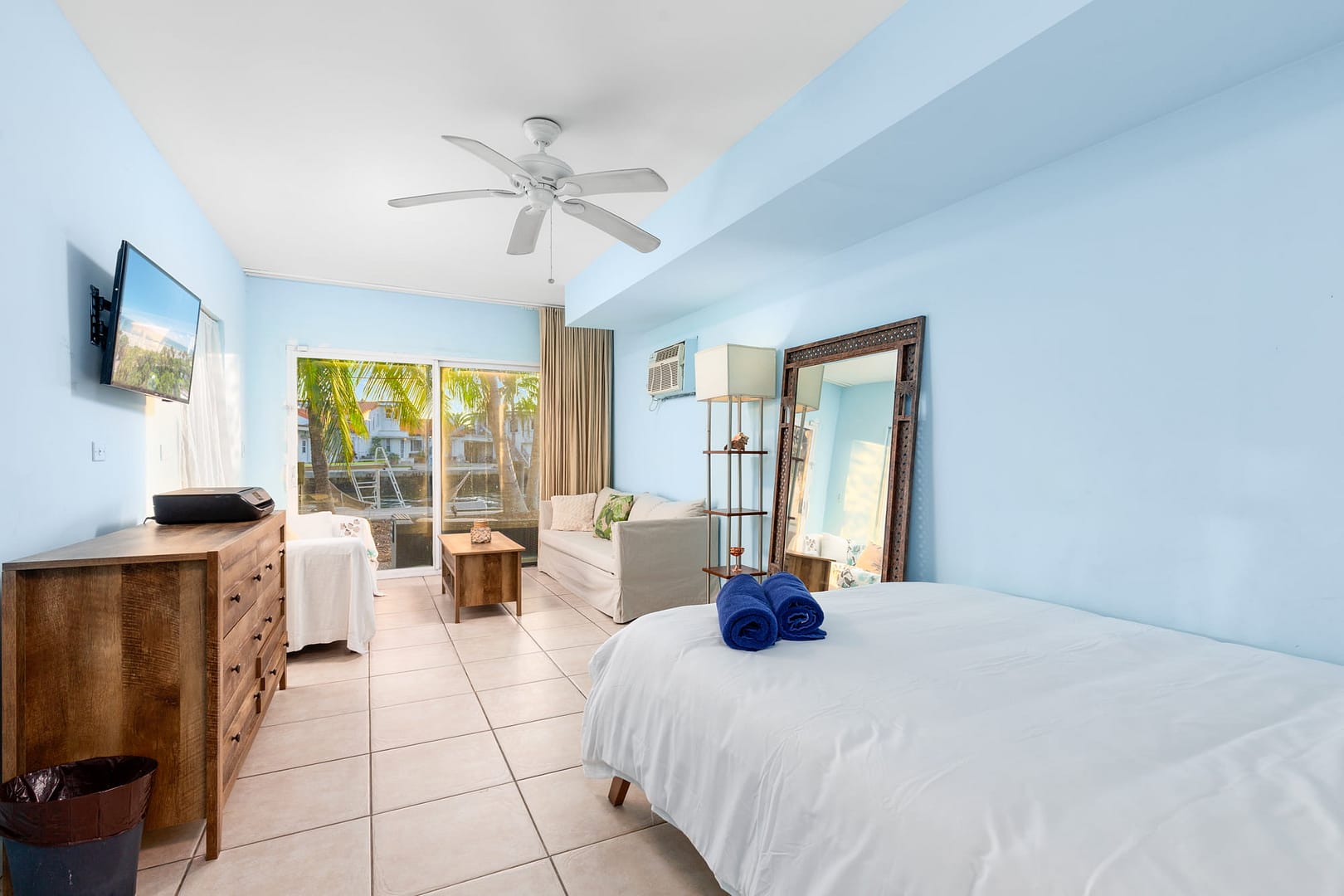 Queens, 2 Full Bathrooms and a flat screen TV. On the other side of the hallway is the Sunrise Room also fitted