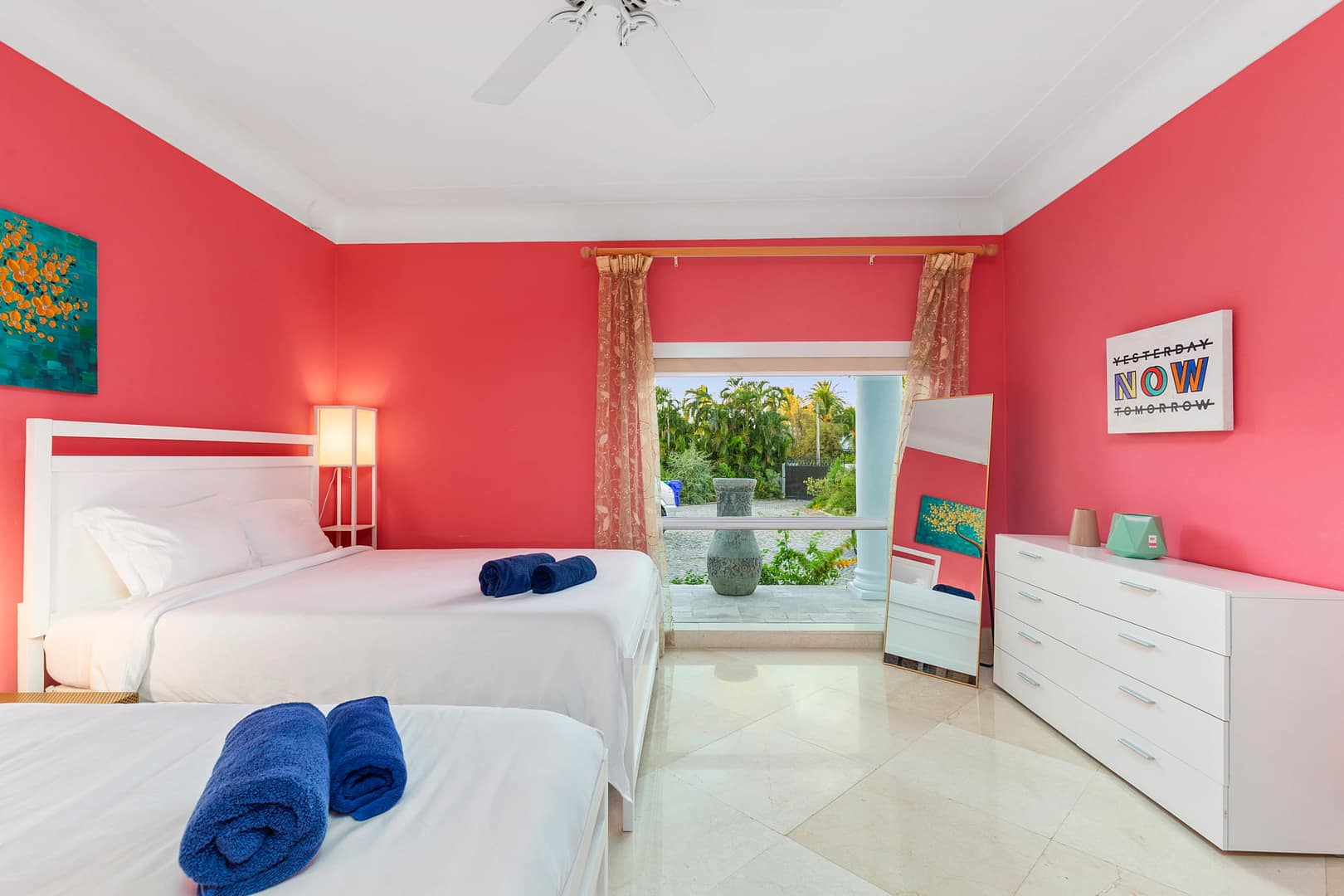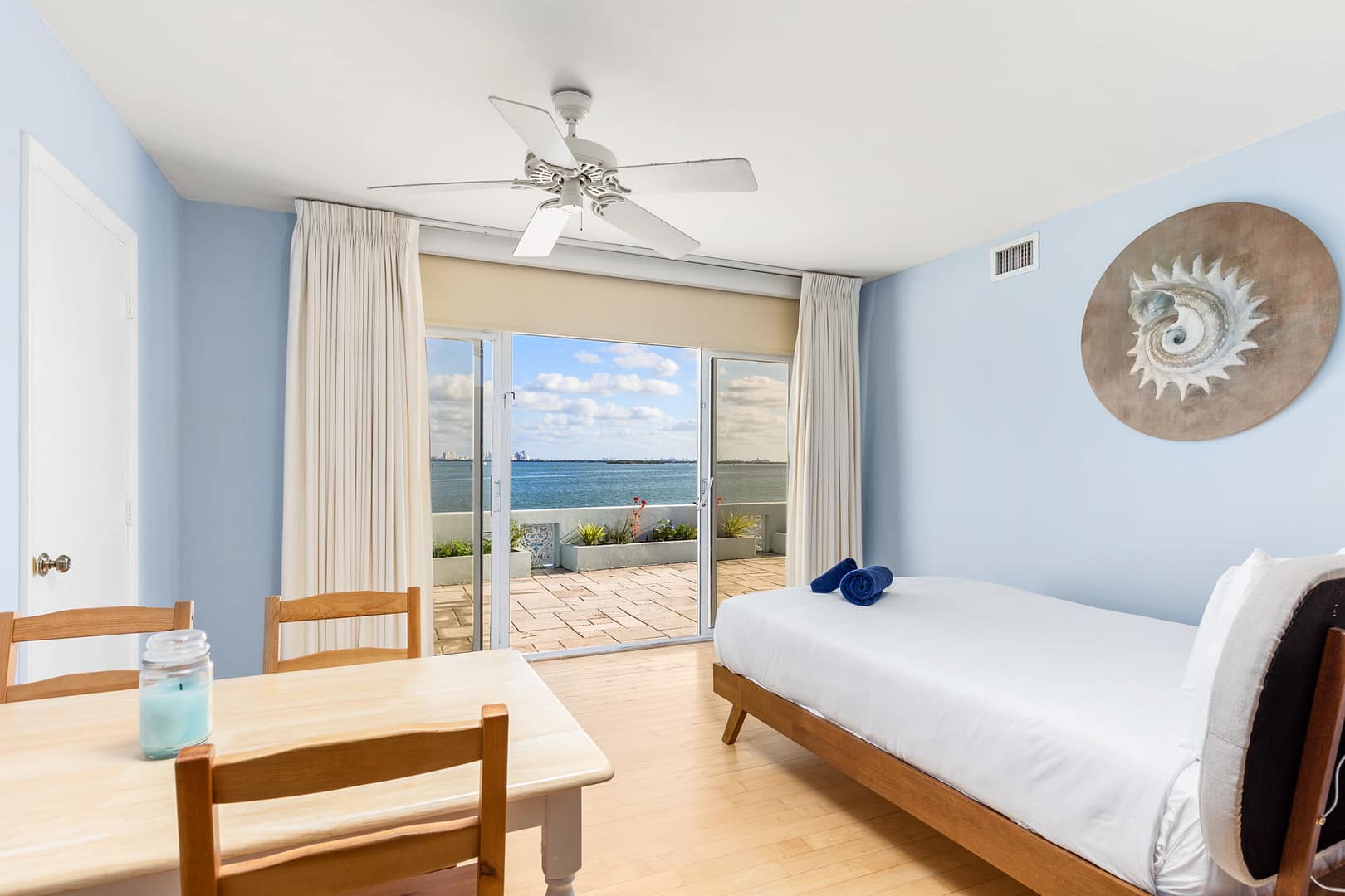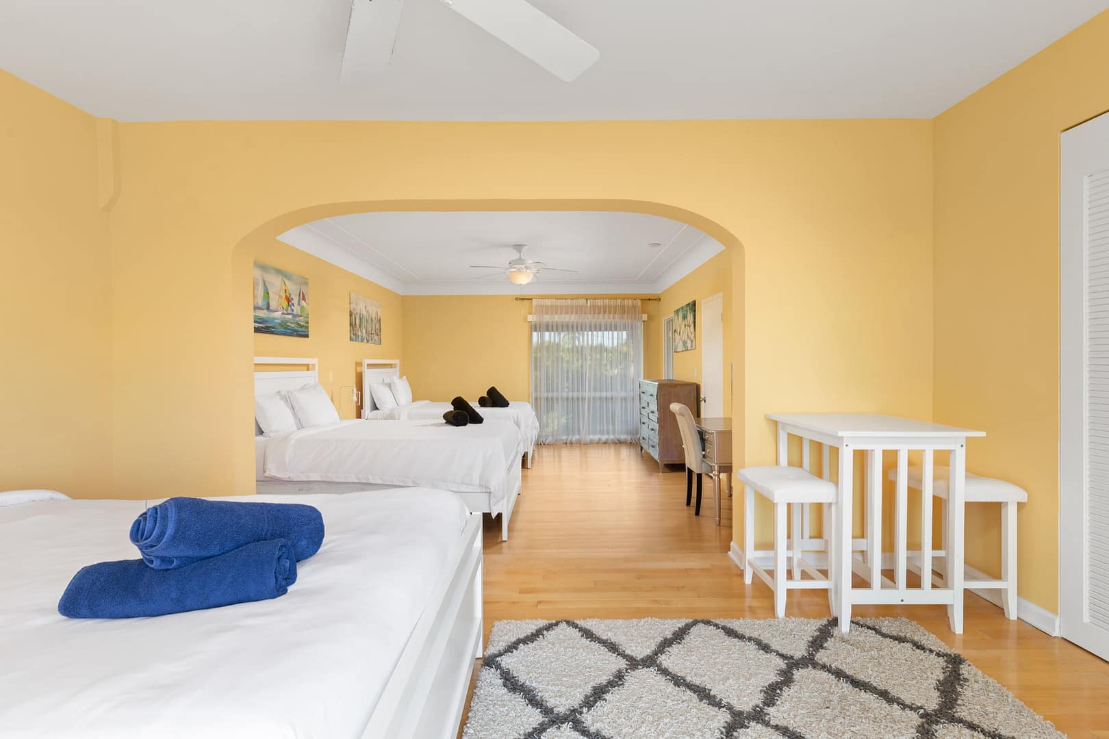 with 3 Queens and a full bath, while the Lime room features a Queen bed and full bath. Stunning Bay Views are