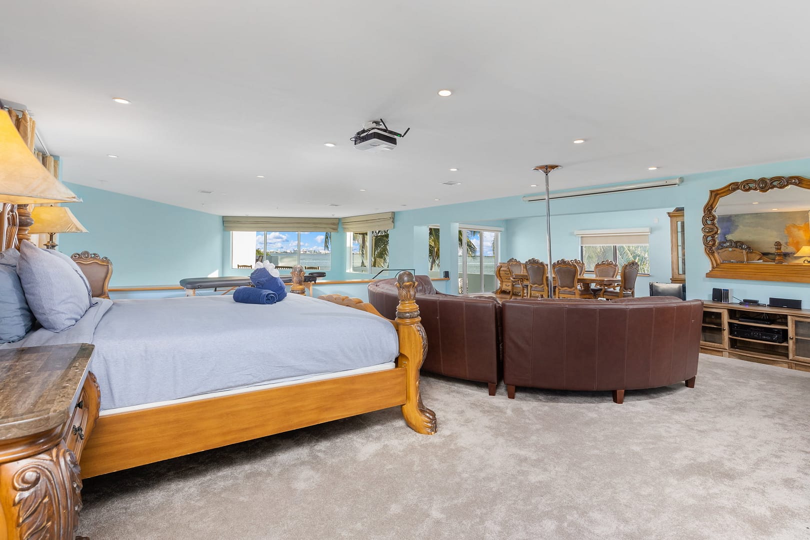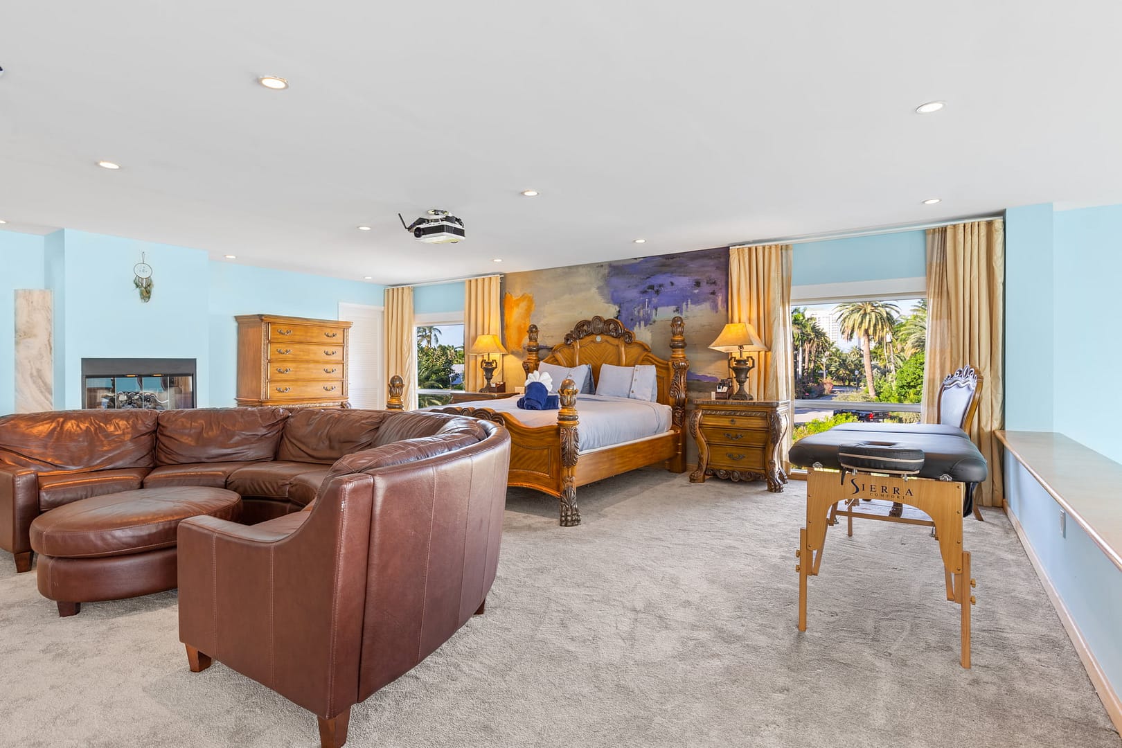 features a gigantic 1,500 square foot, 2 level master suite with it's own private screening area, dining room and