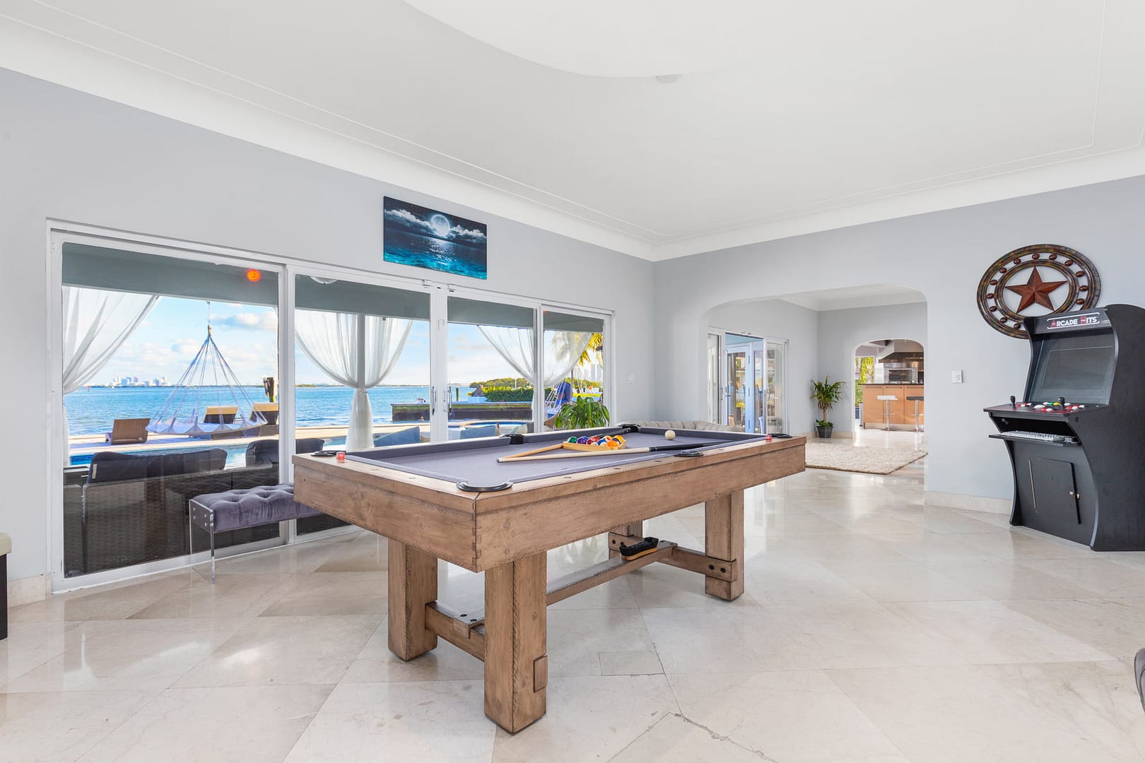 a recreational room, complete with a pool table and arcade stocked with 200 classic games.