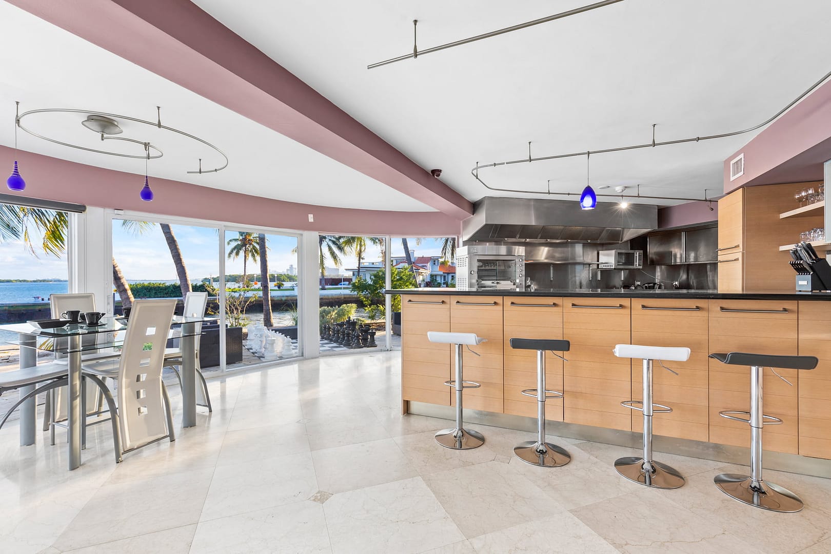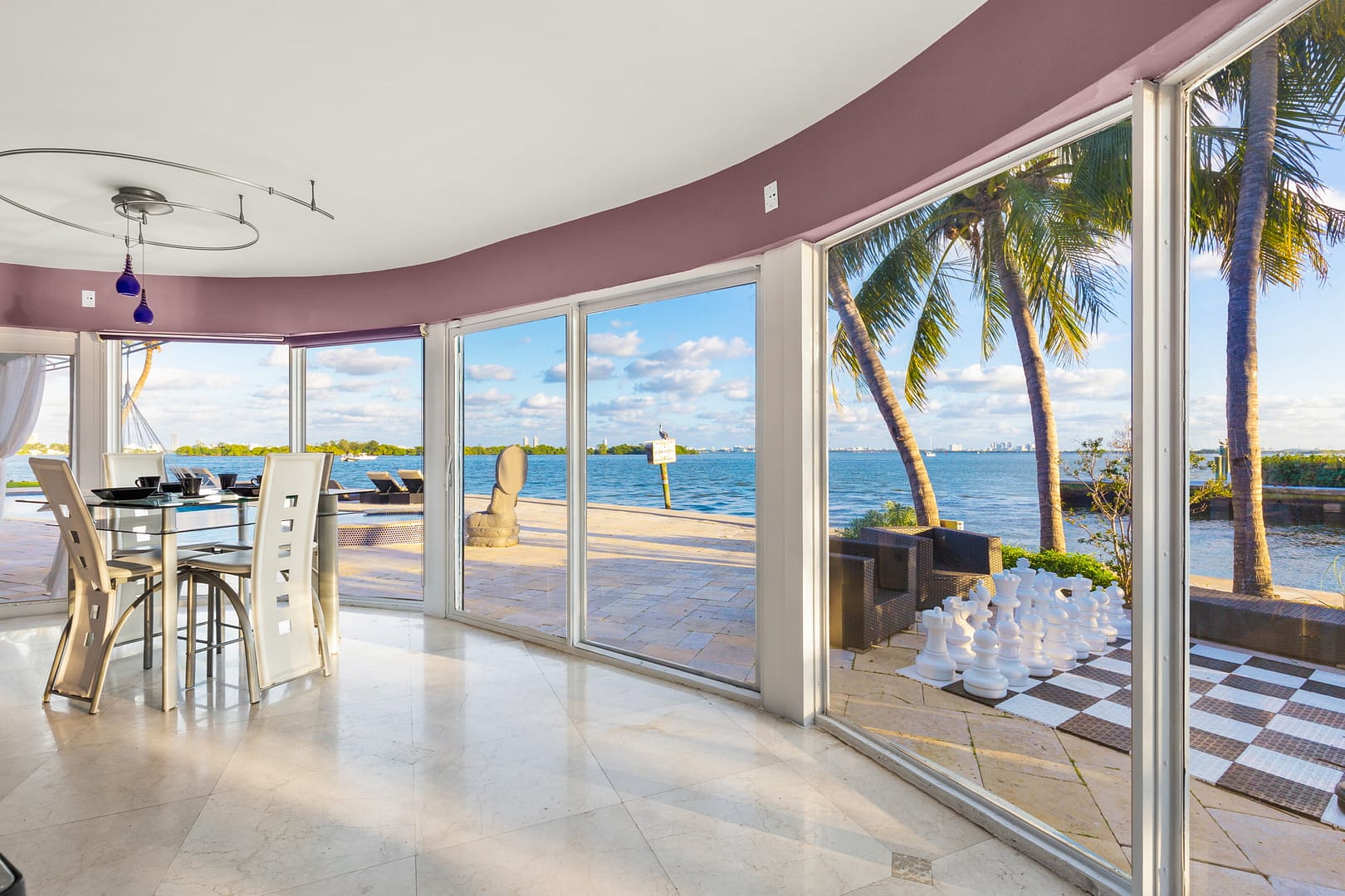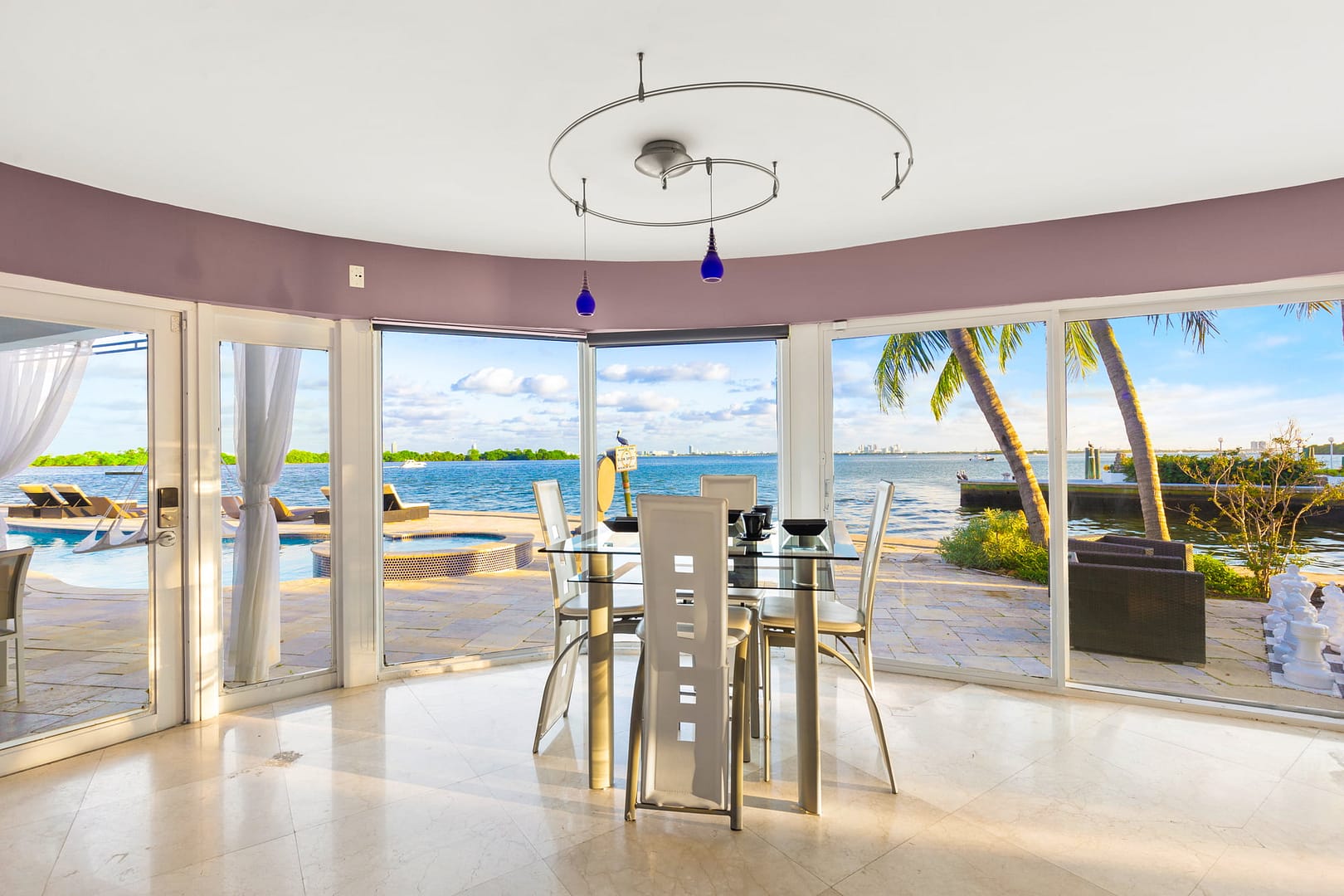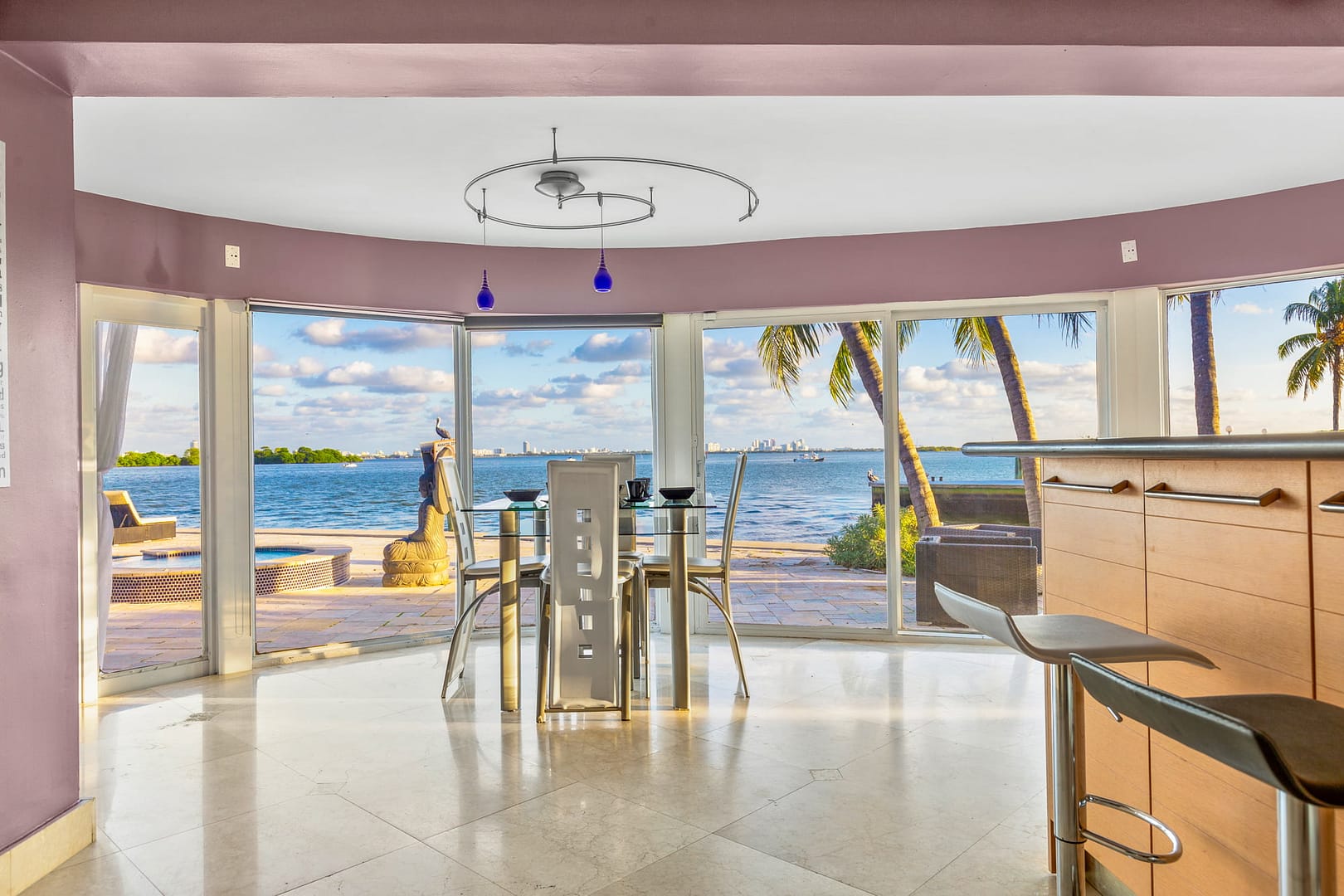 walk-in. A bar and breakfast nook are literally surrounded by Biscayne beauty.