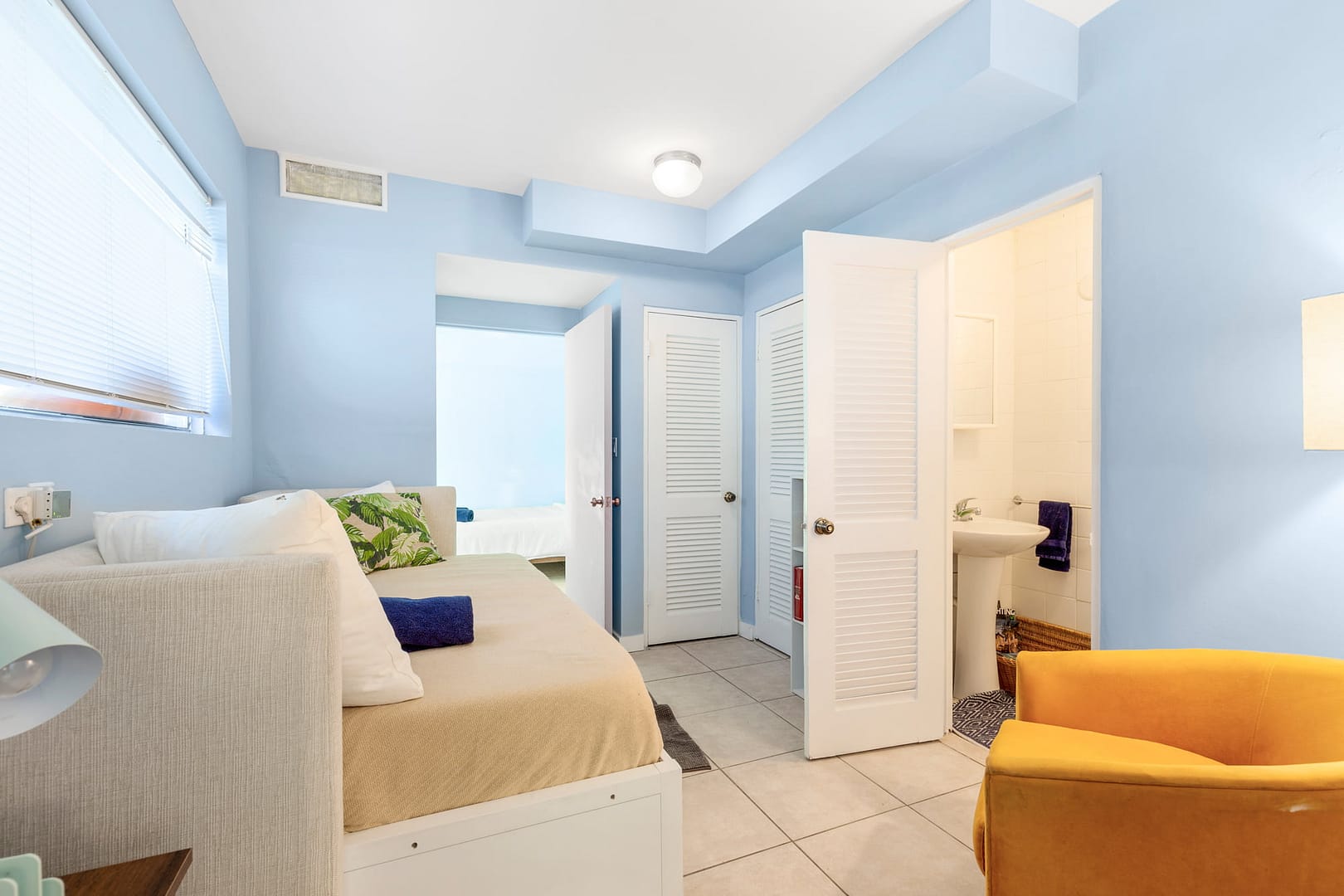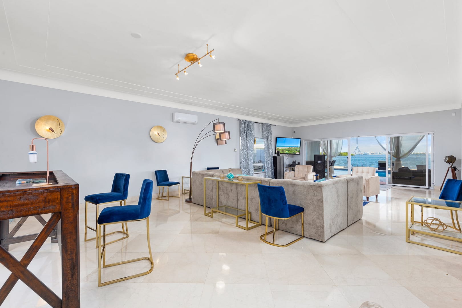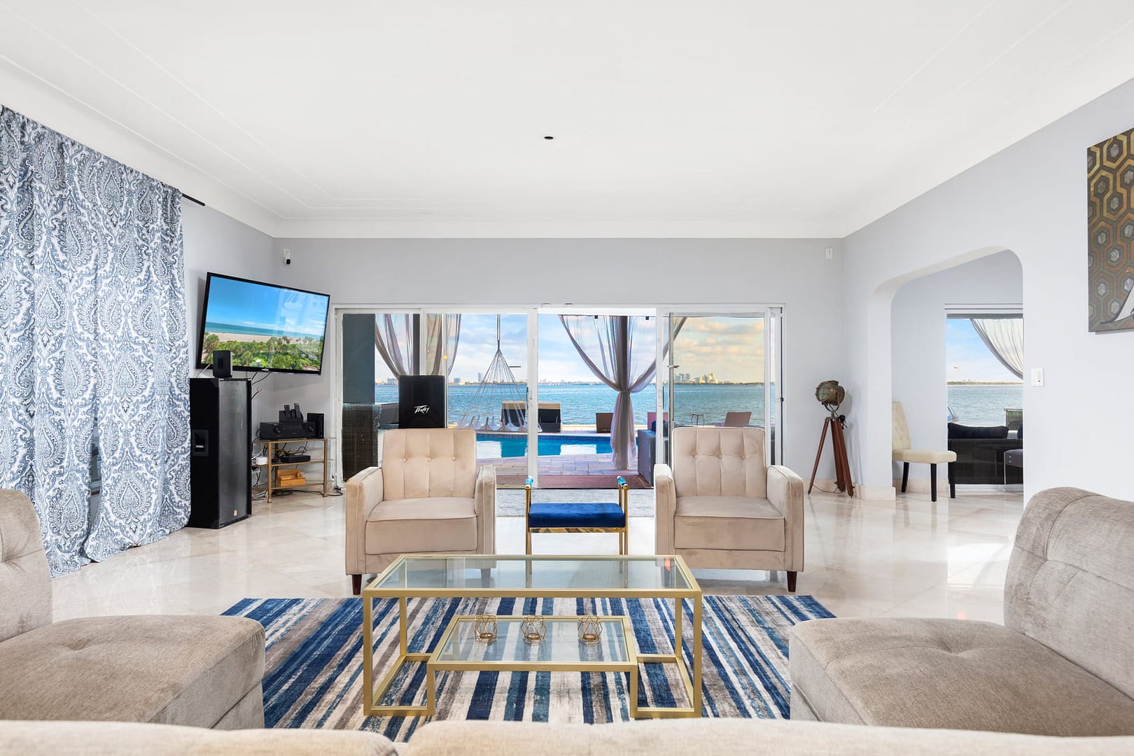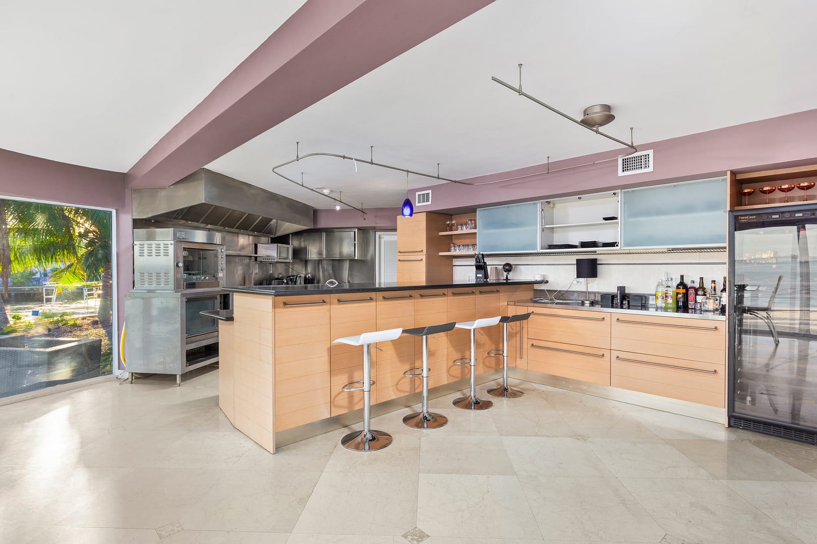 walk-in. A bar and breakfast nook are literally surrounded by Biscayne beauty.