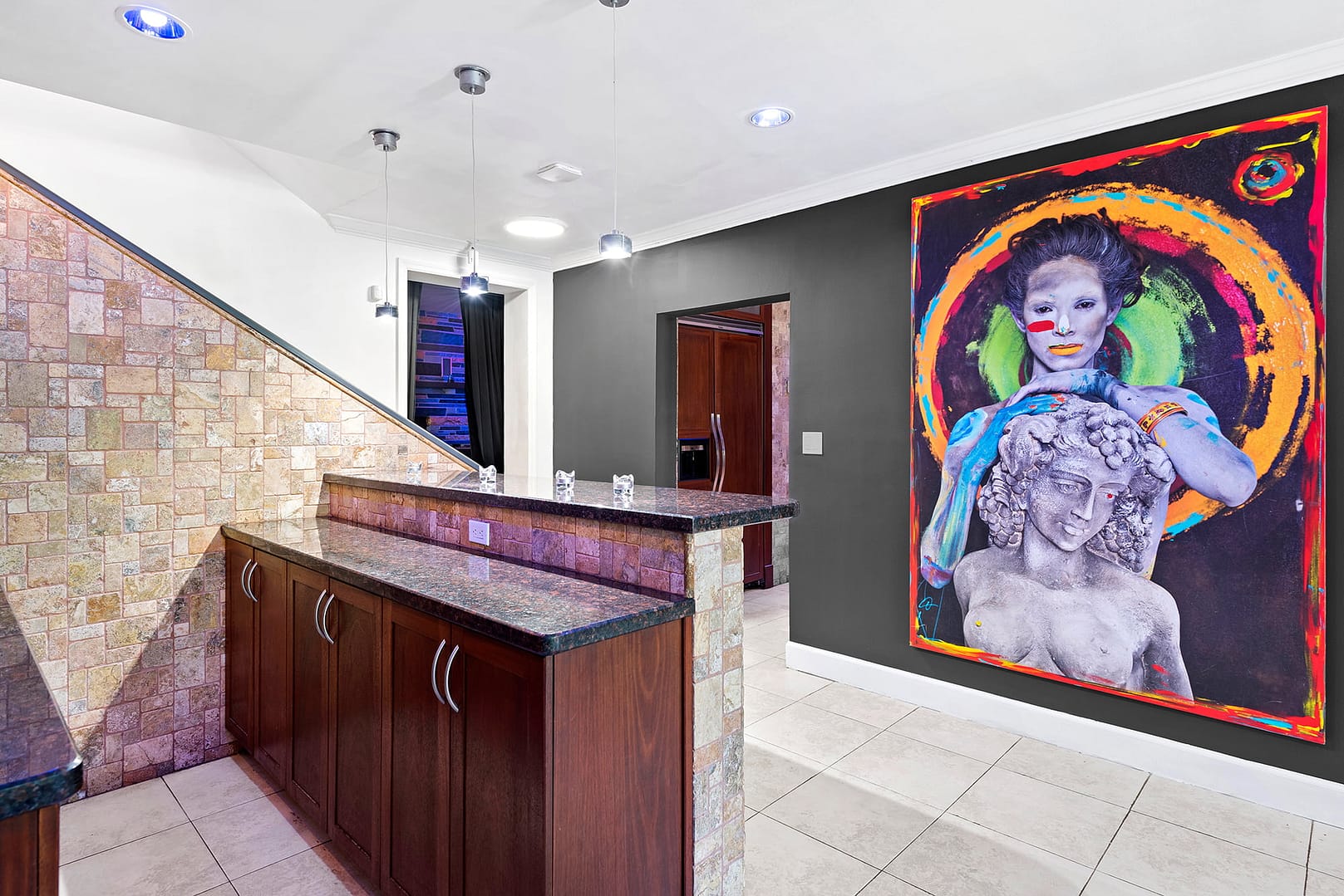 lighting and custom artwork fill the entire property offering an unmatched entertaining experience.