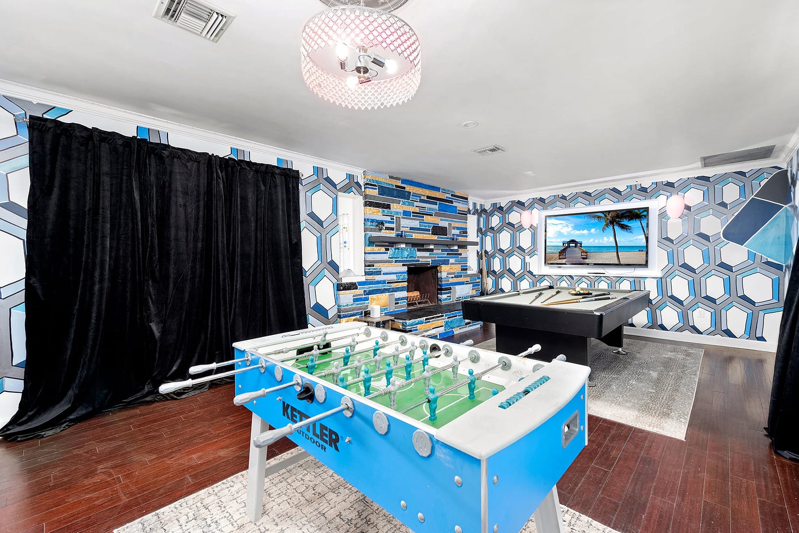 and foosball tables as well as a flatscreen tv to catch all the games.