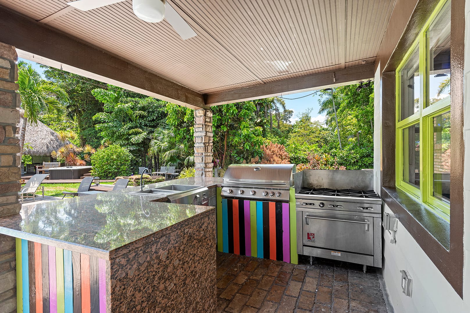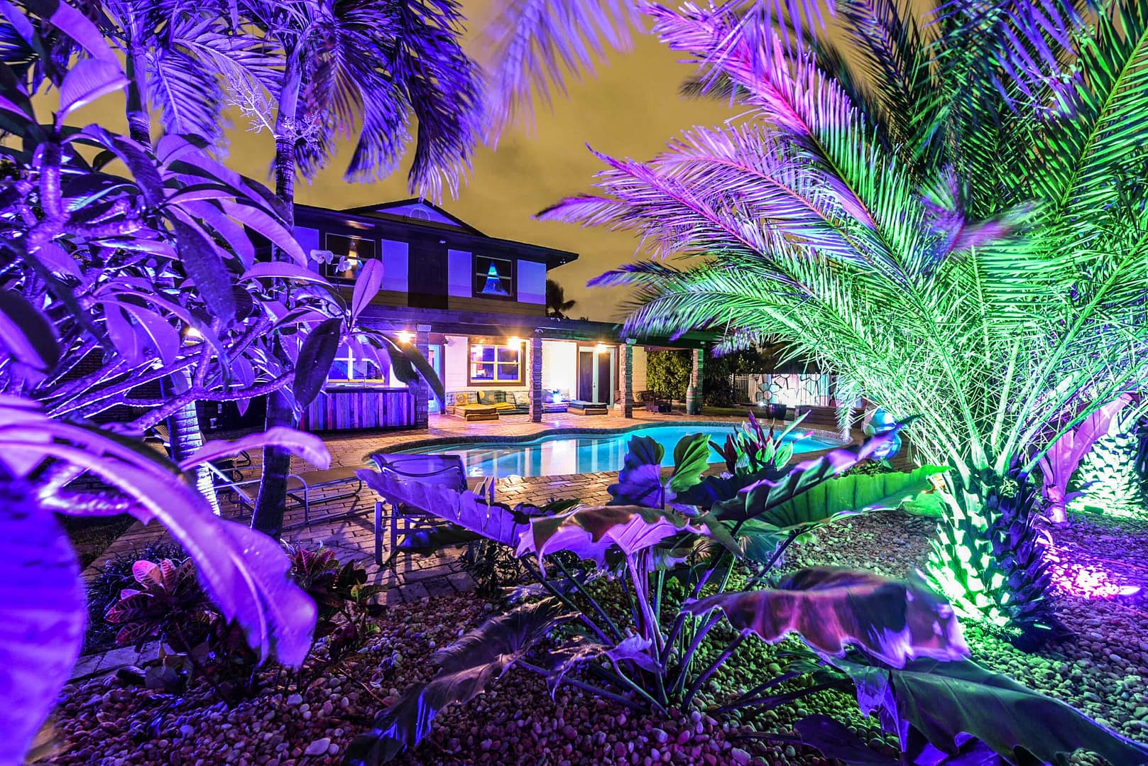 tons of privacy, a sub-tropical oasis sits beside the large heated salt water pool, featuring palm