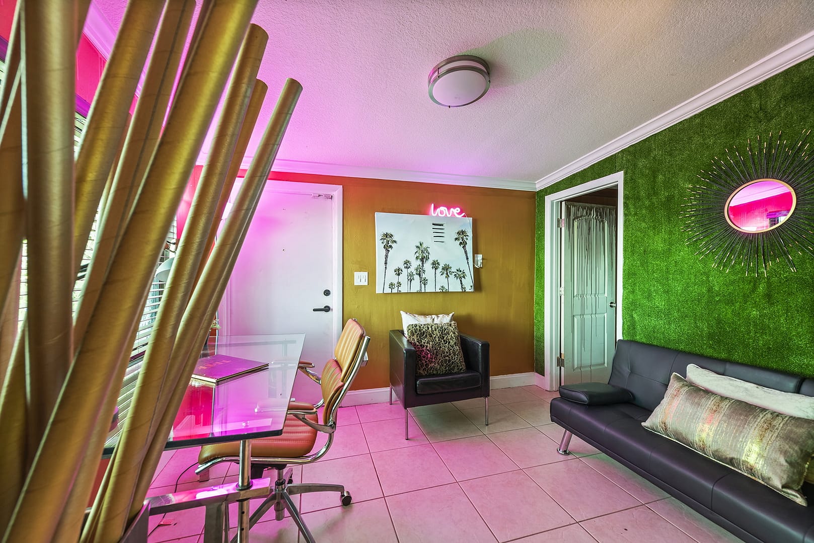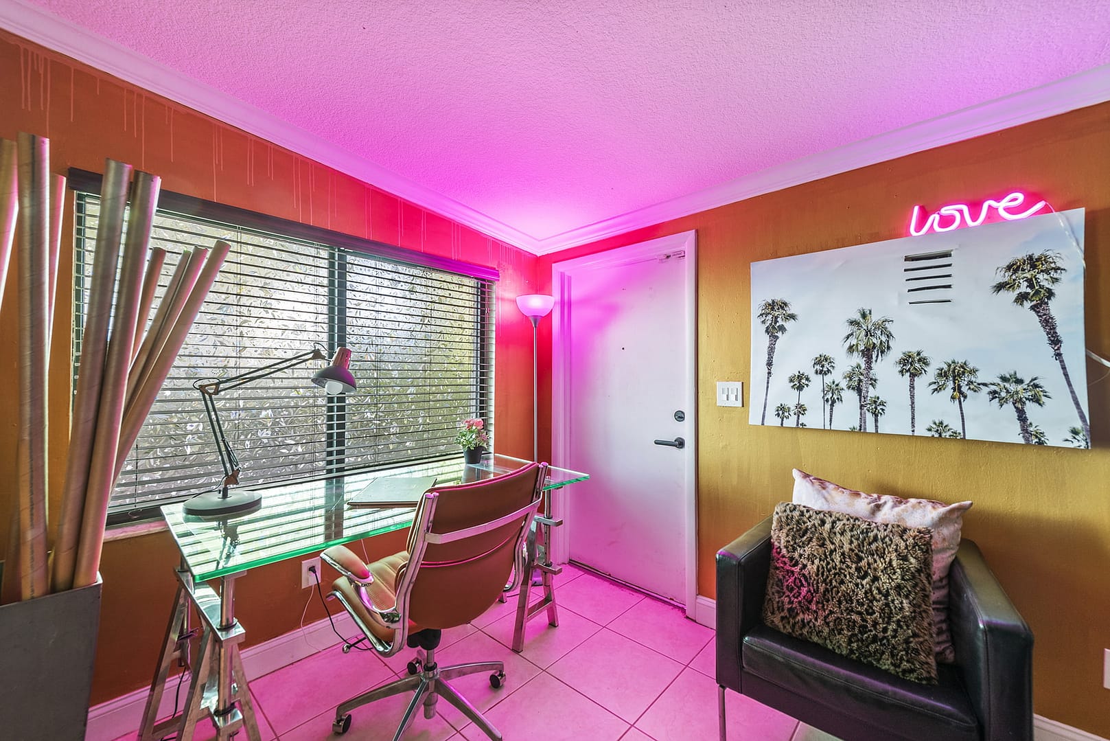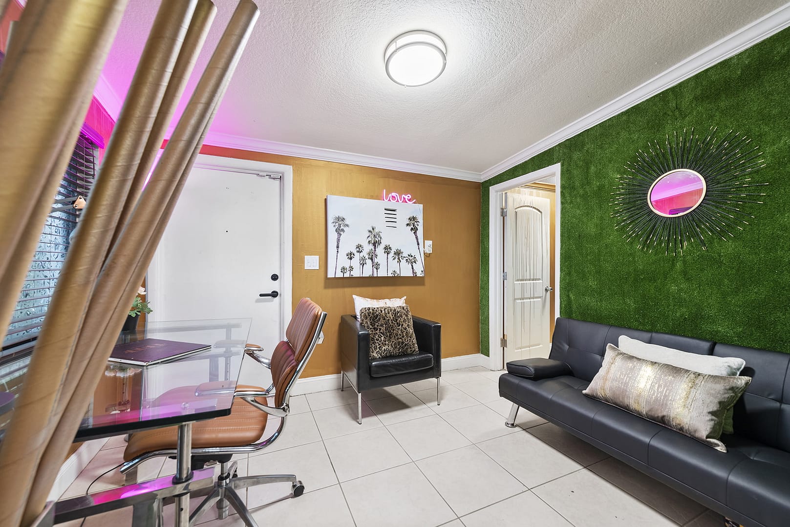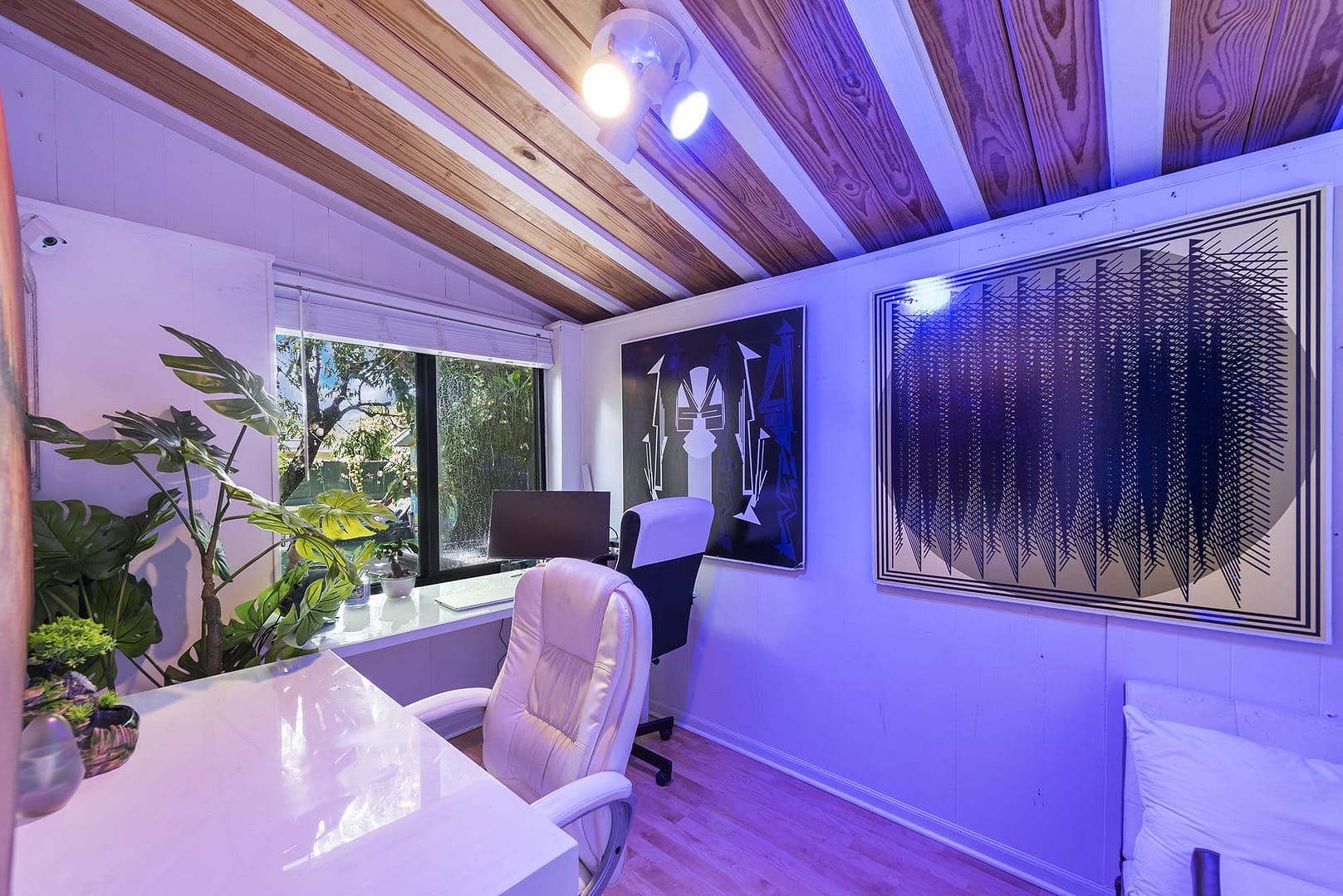 sound system, artwork from all over the globe, mood lighting. As well as 2 offices, heated