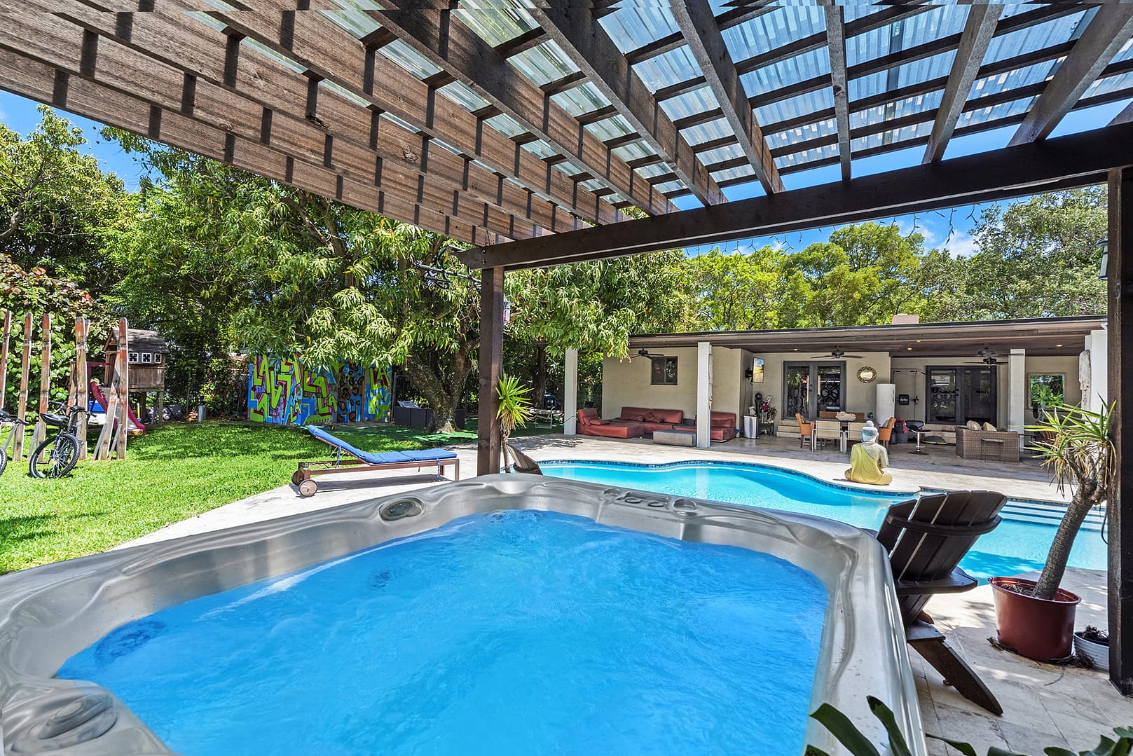 pool, covered Jacuzzi, and a one of a kind Zen Den.