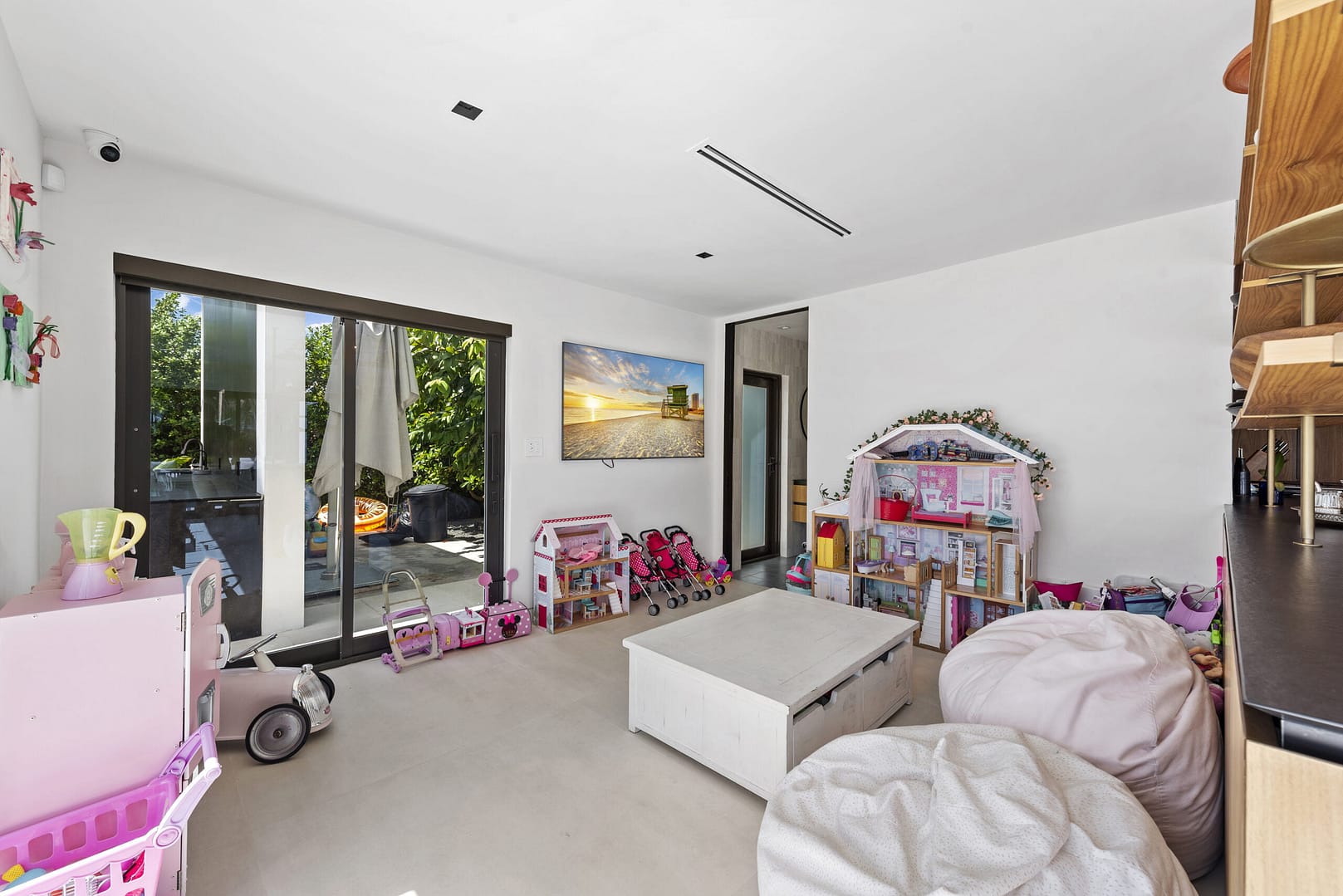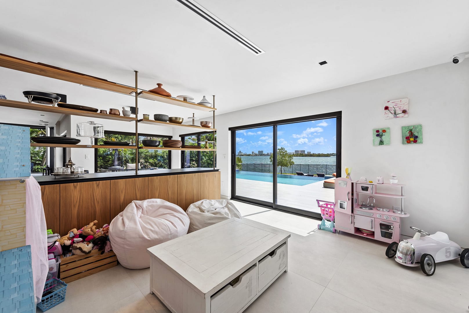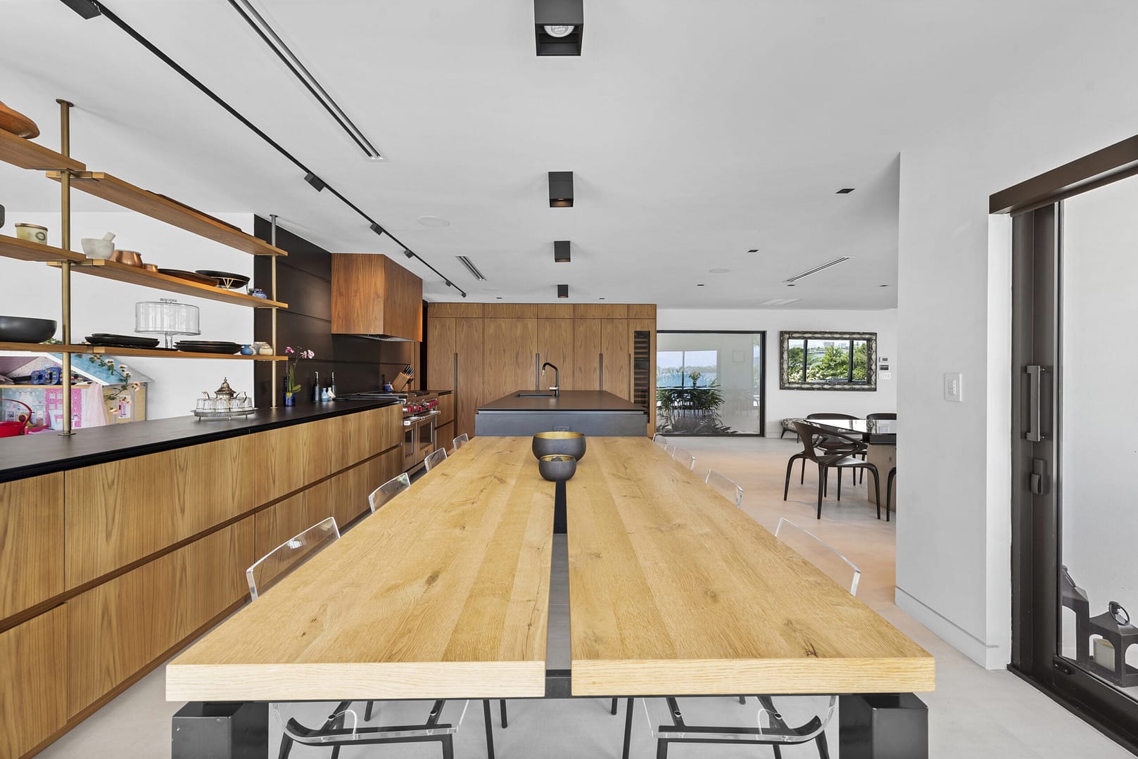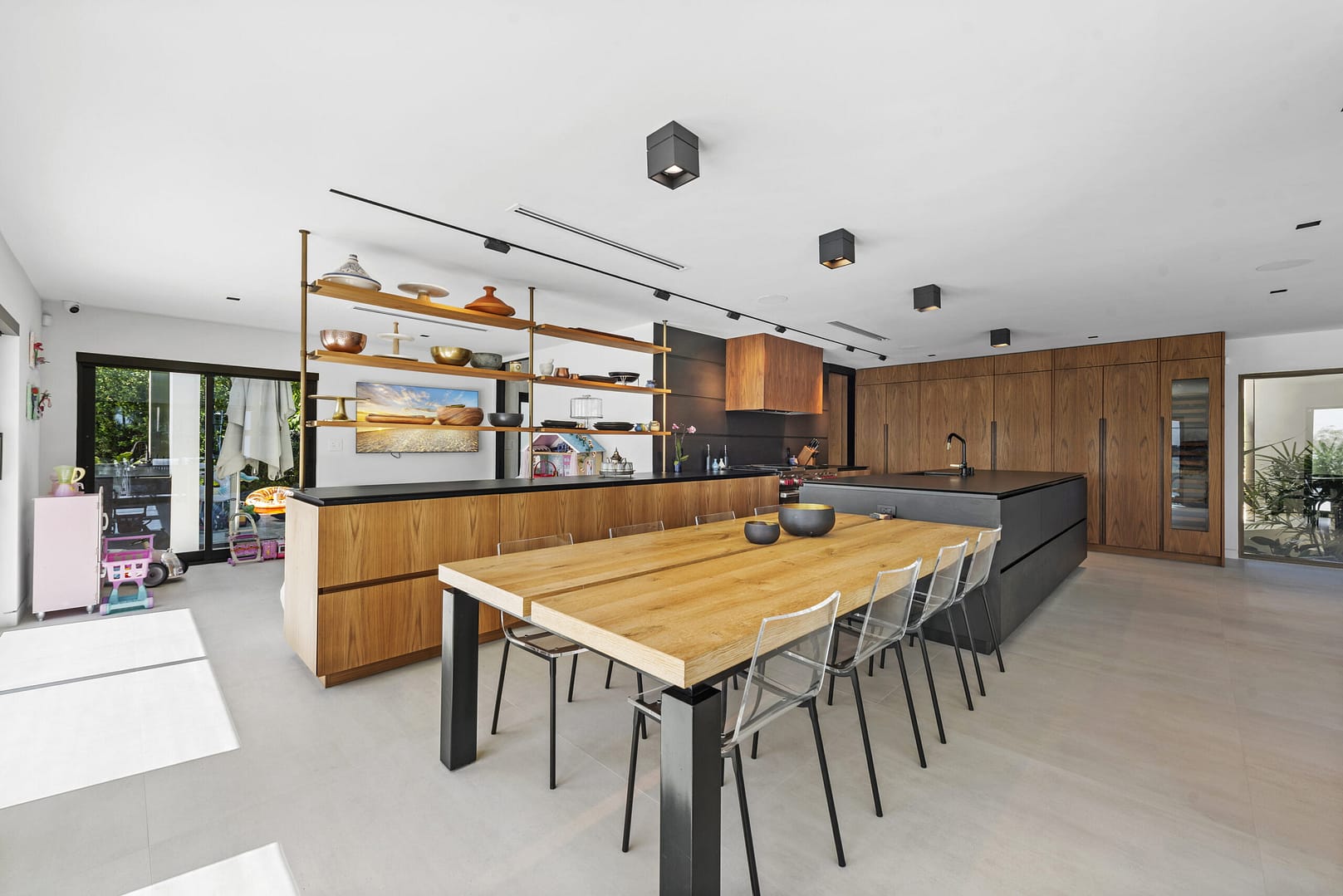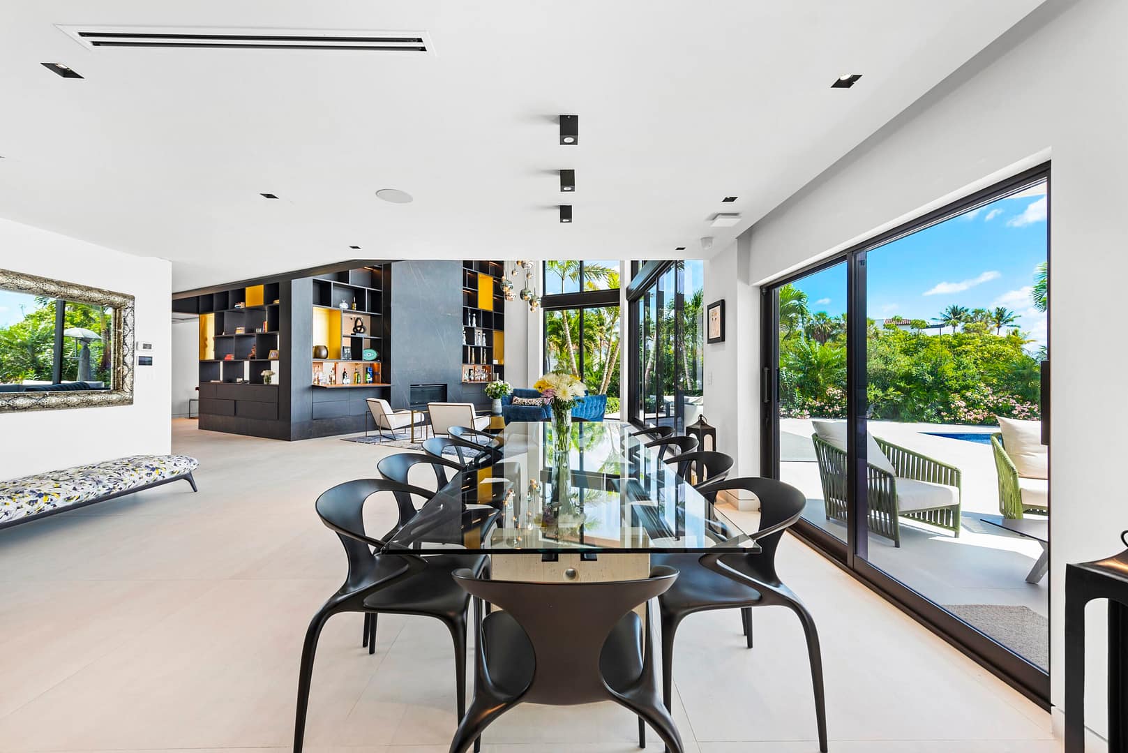 functional design with ample open spaces & wall-to-wall sliding glass doors that completely open,
