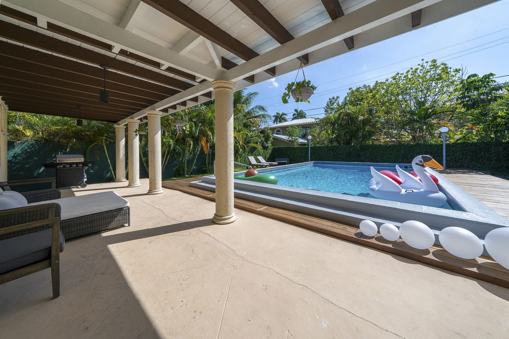 The allure of Miami's sunshine is at your fingertips with Villa Heat's private poolside oasis. Lounge in luxury as you soak up the Florida sun or host glamorous pool parties against the backdrop of the tropical landscape. This fancy villa in Miami effortlessly transforms into your personal playground of indulgence.
