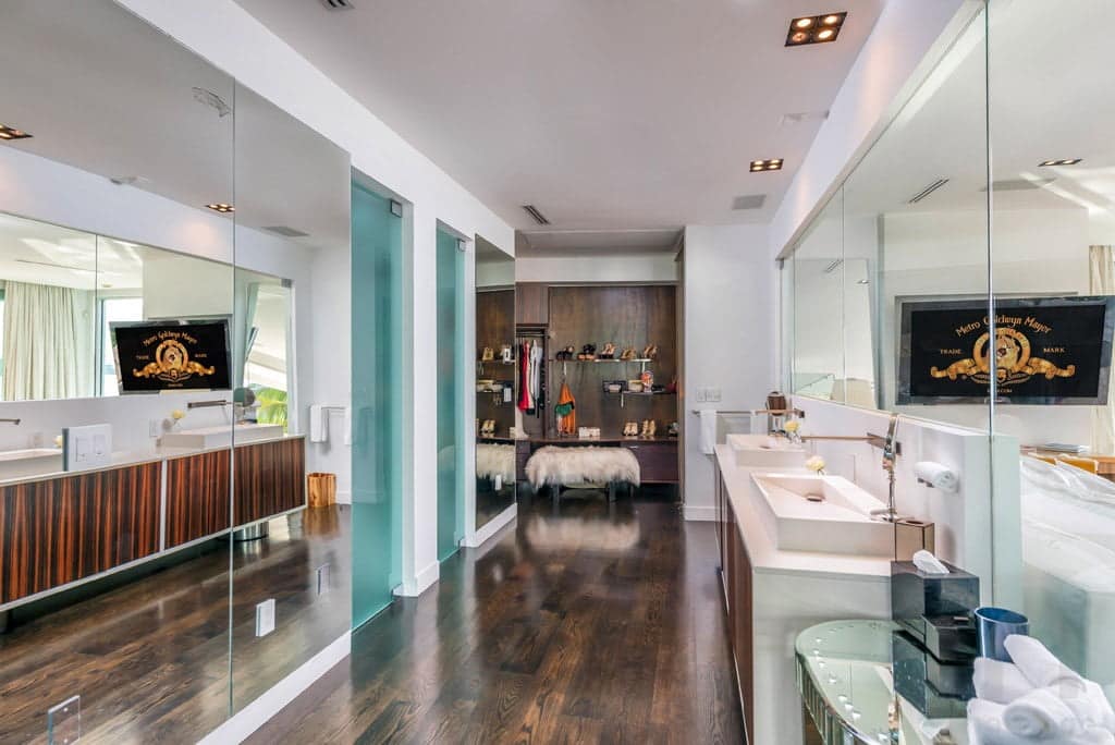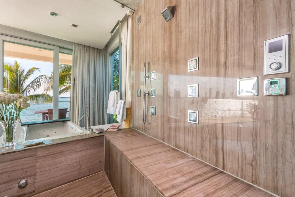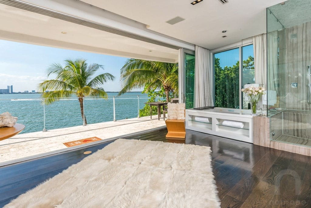 The outdoor space is just as impressive, with a large pool, hot tub, and outdoor kitchen. It's the perfect spot for entertaining guests or simply relaxing and enjoying the beautiful Miami weather.