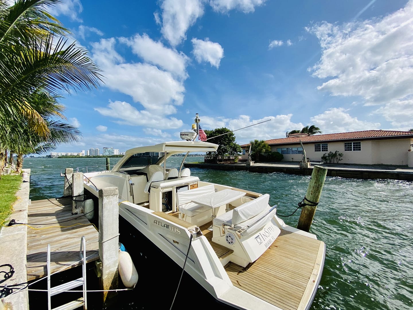 ft of dockage that can accommodate a yacht and two additional vessels.