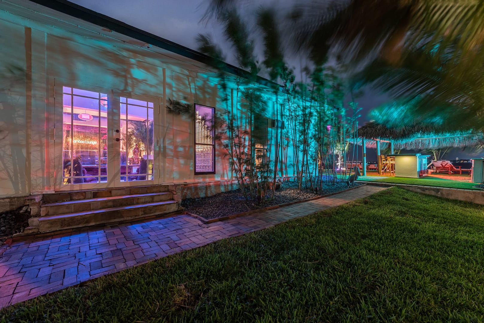 outdoor bar, and kitchen as well as LED lighting and daybeds both inside and out make this the perfect home