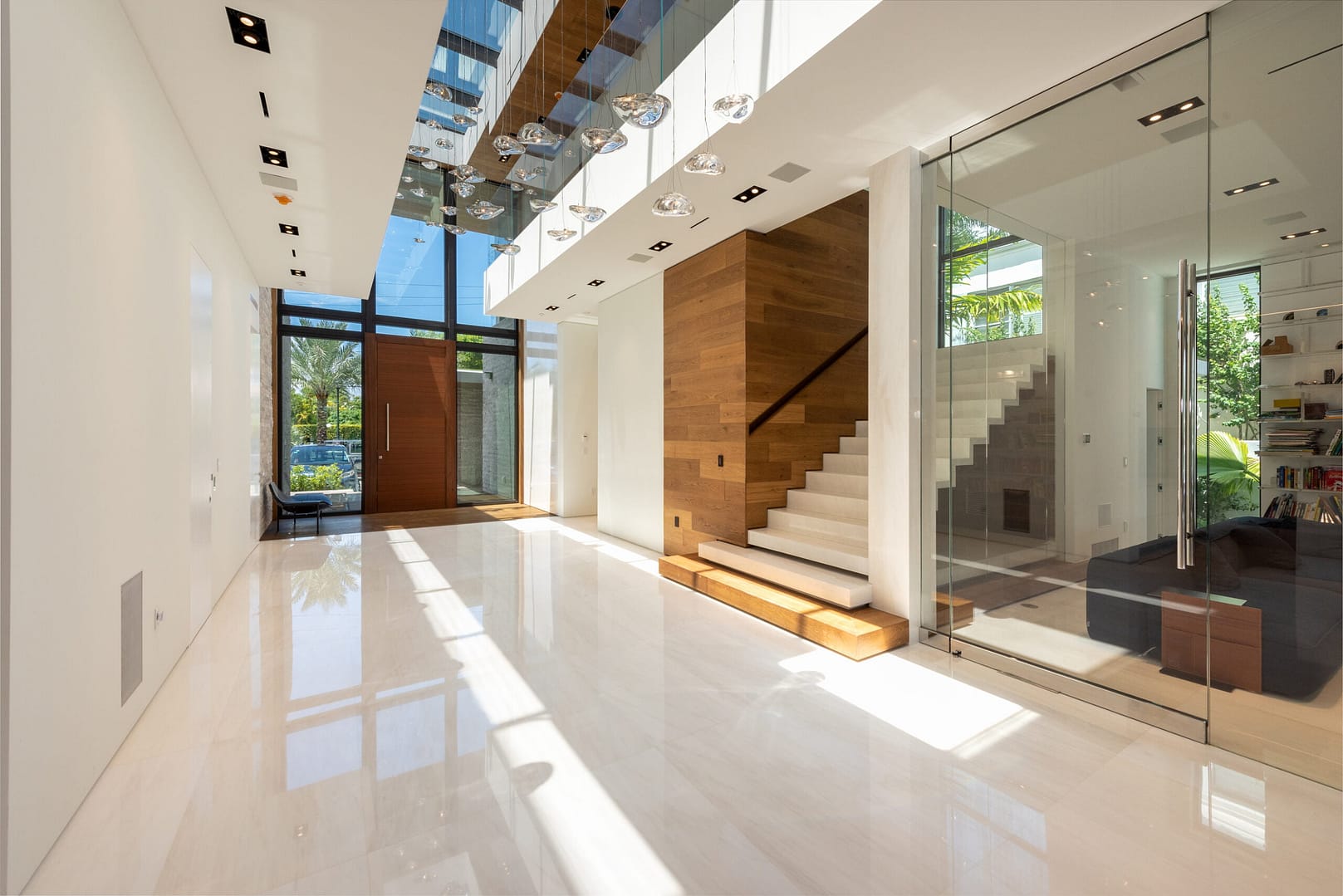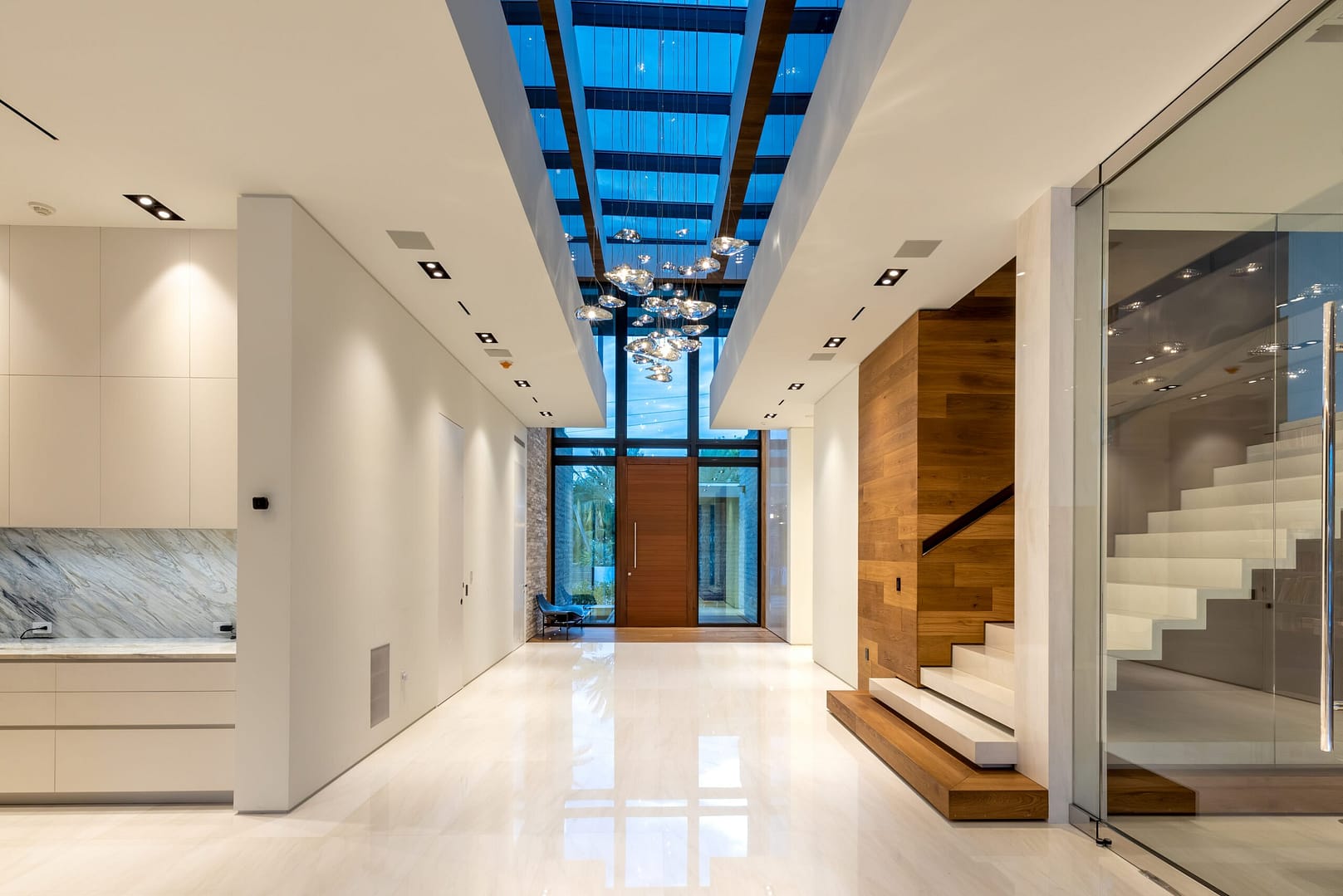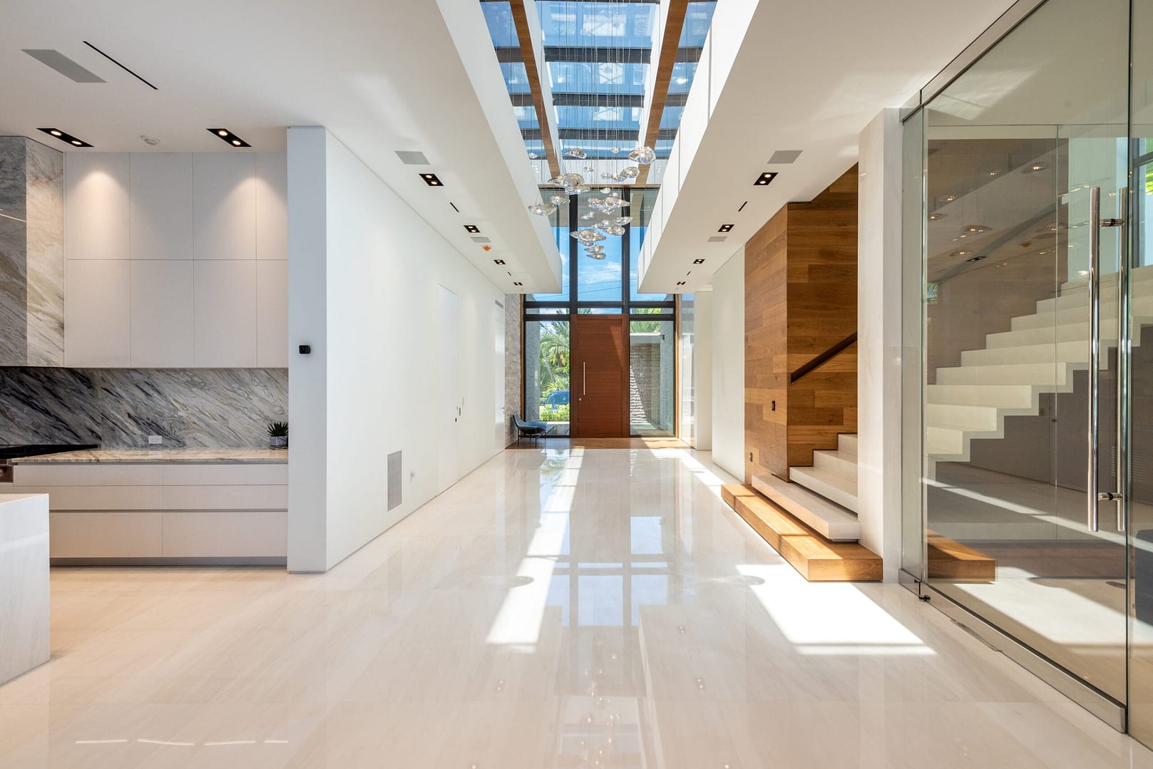 Upon entry you are instantly greeted by double height ceilings with a full length skylight and