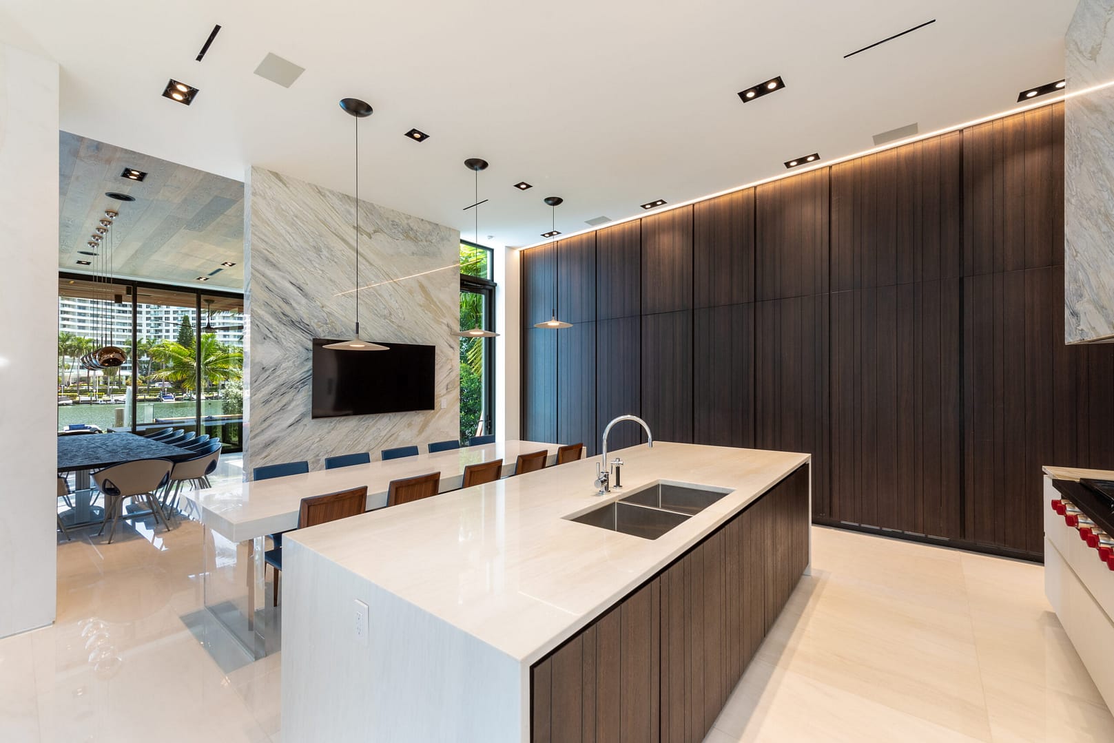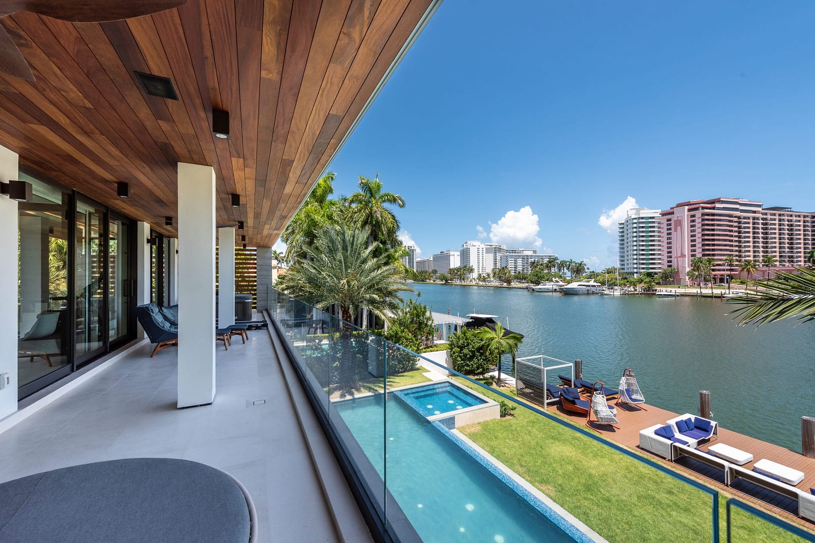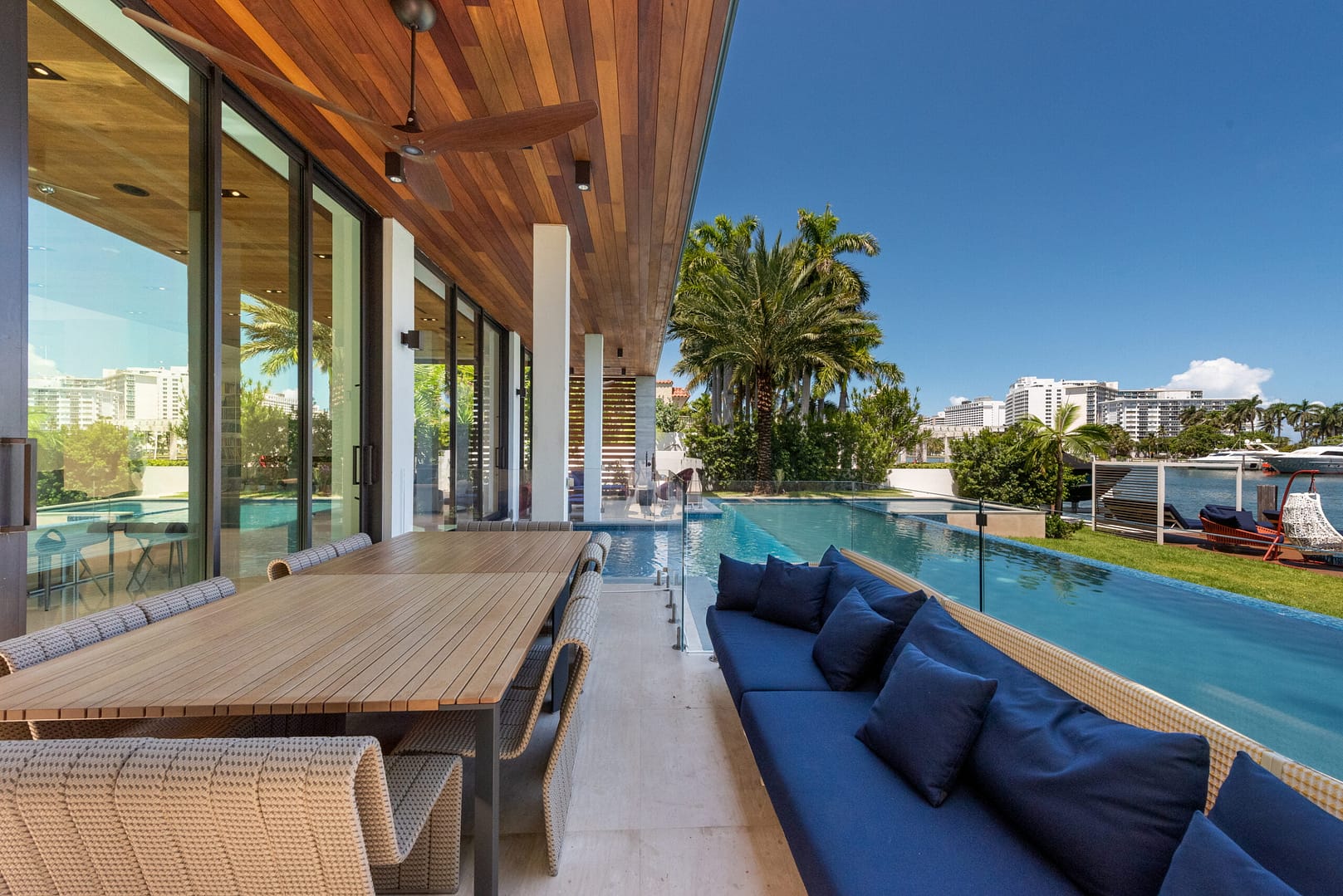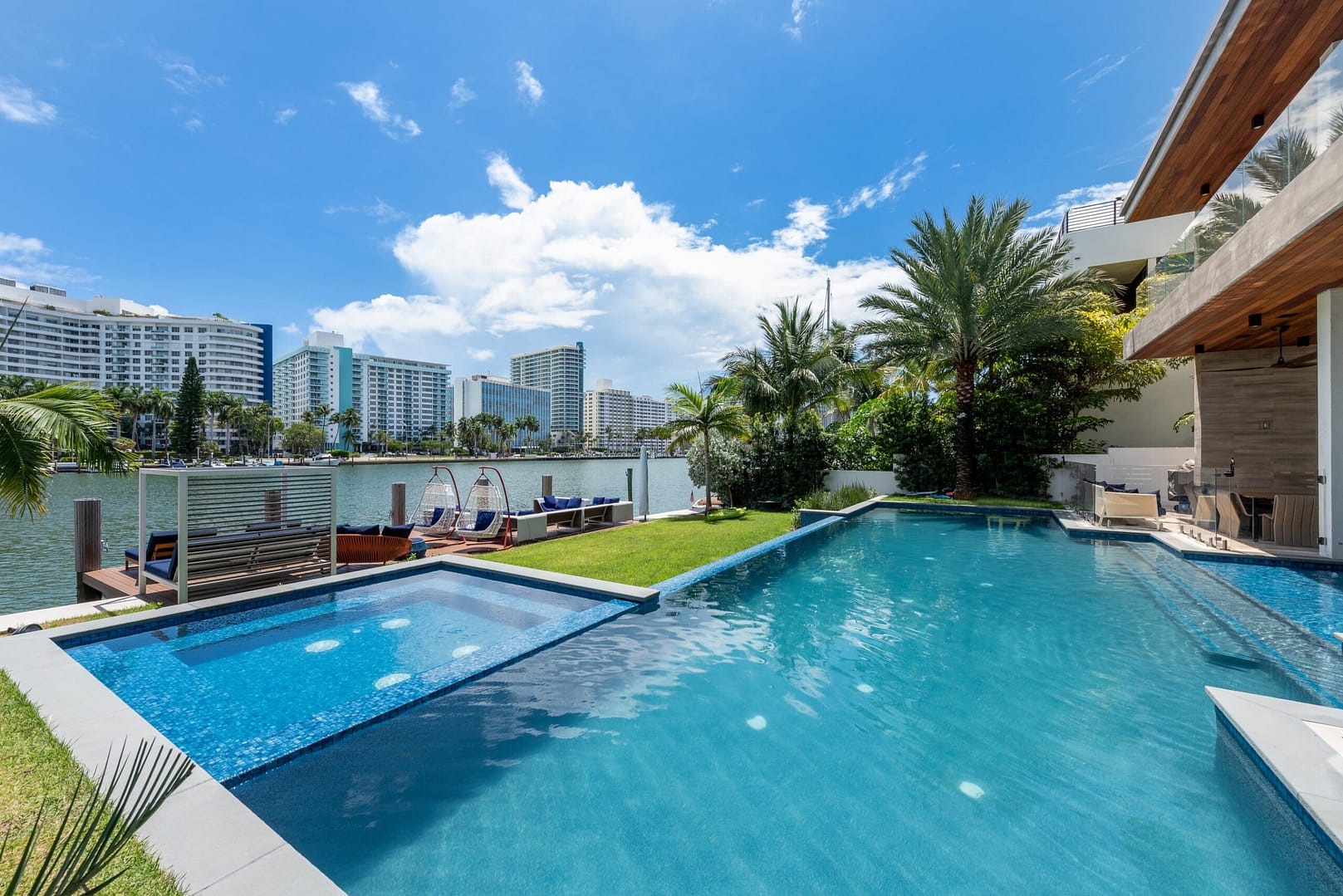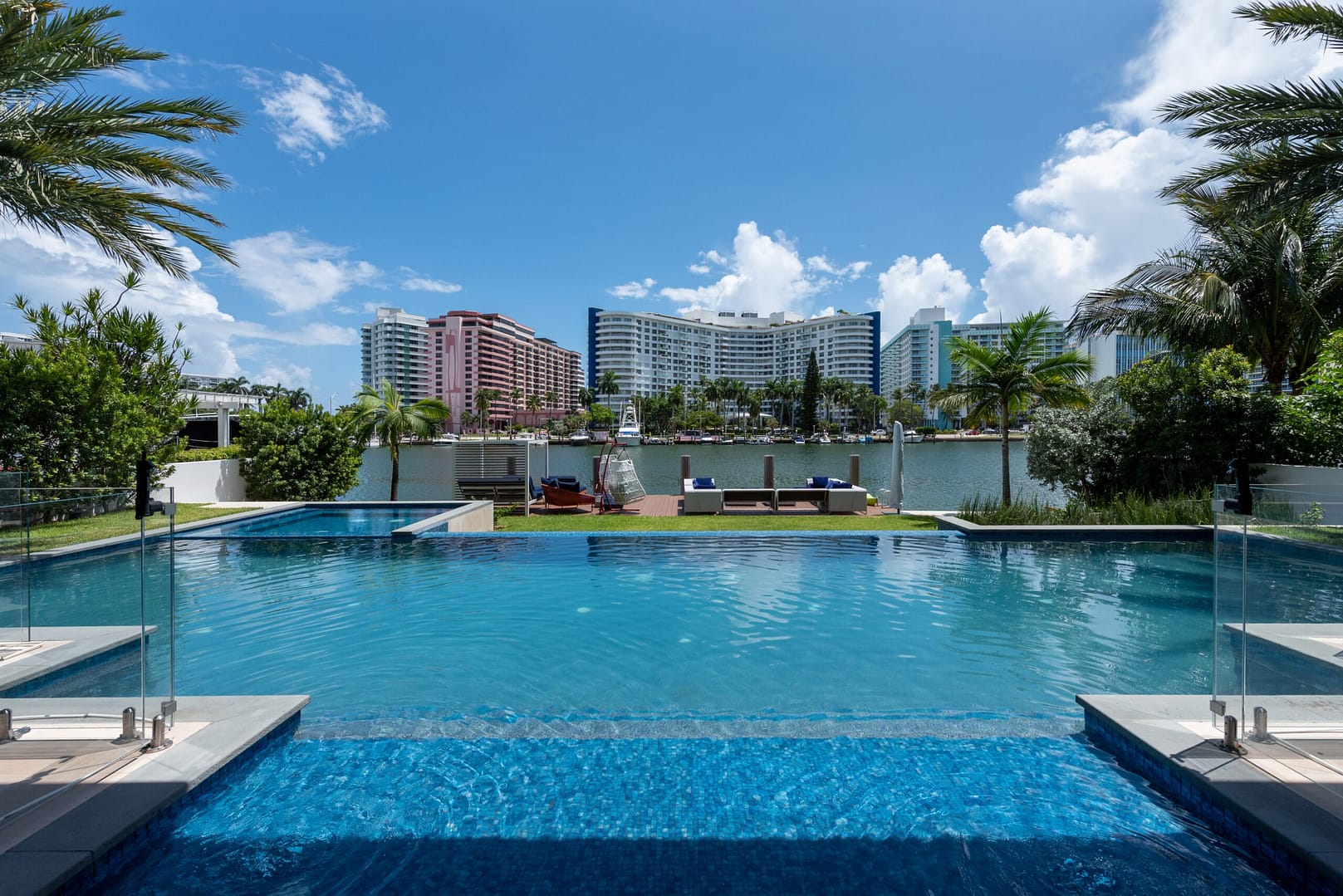water views that open right from the living room directly into the pool and onto the glistening