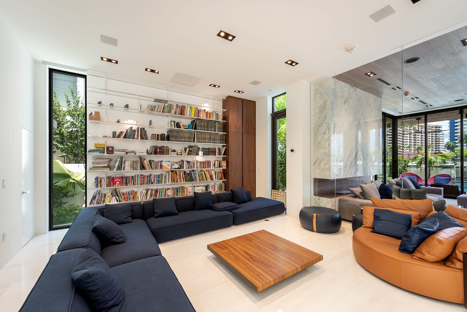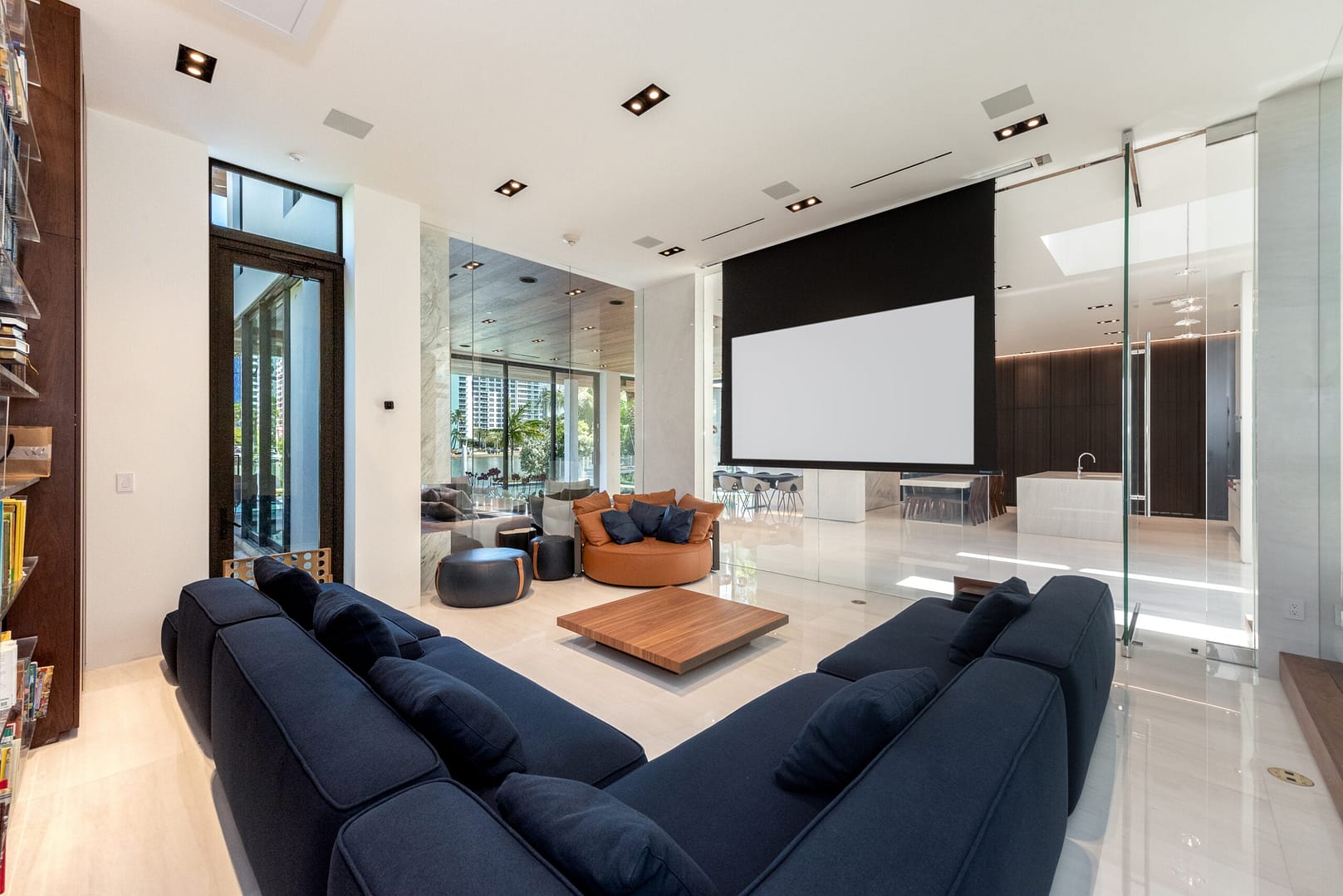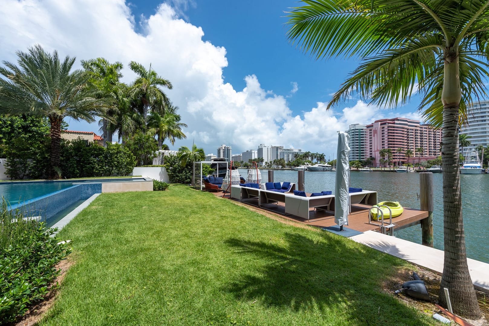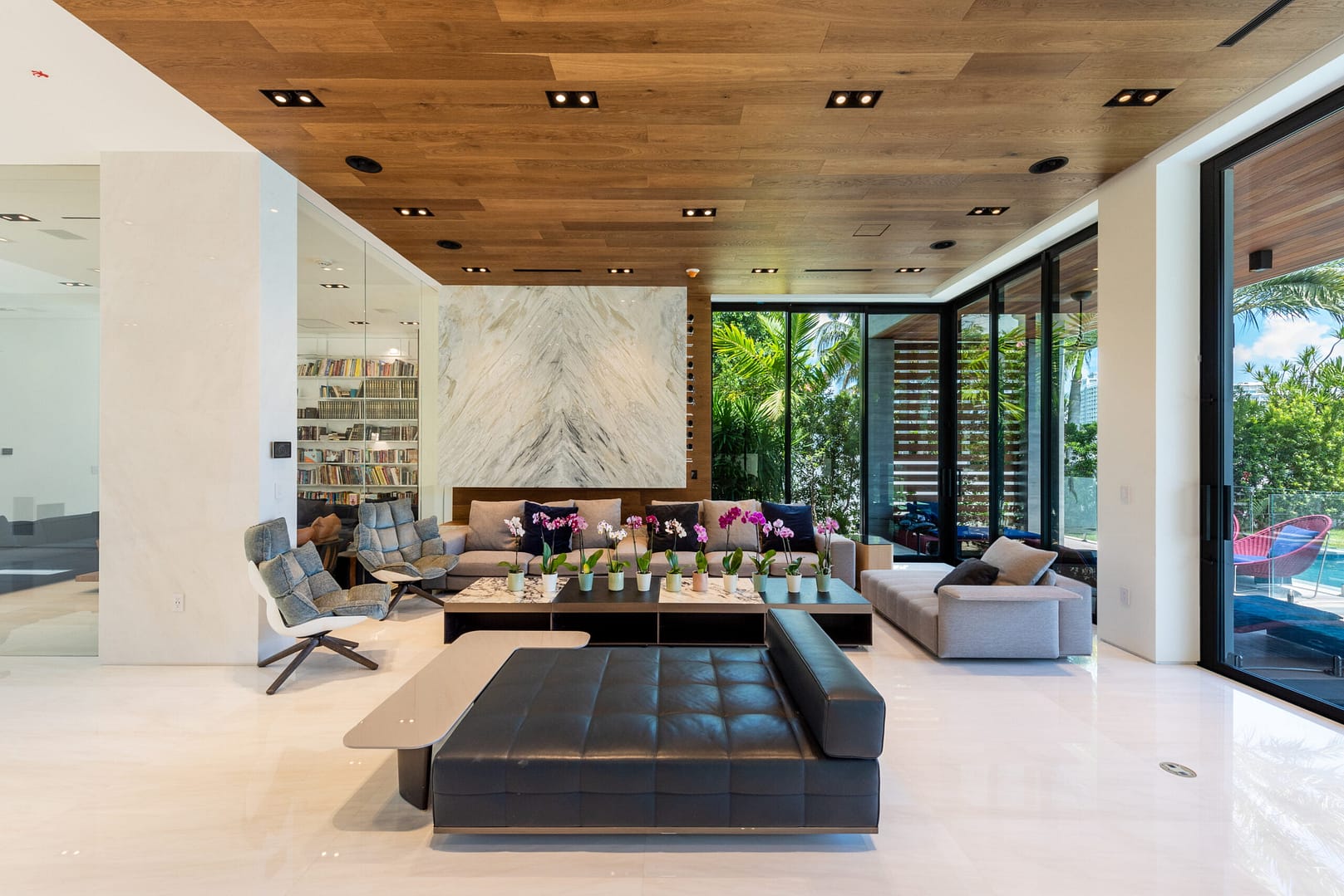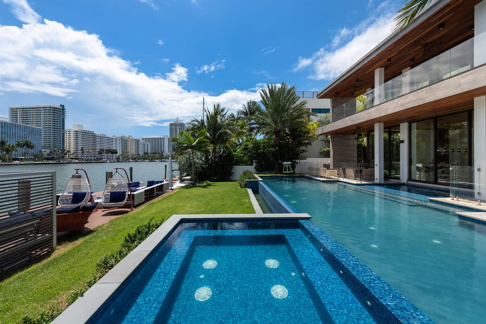 water views that open right from the living room directly into the pool and onto the glistening